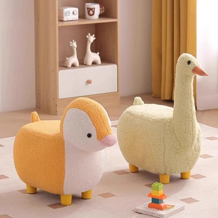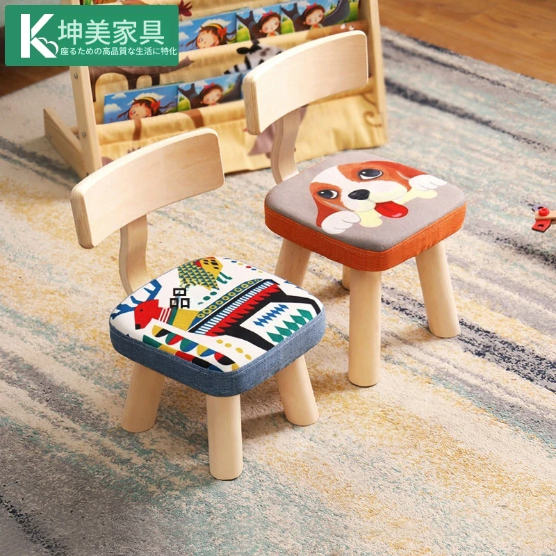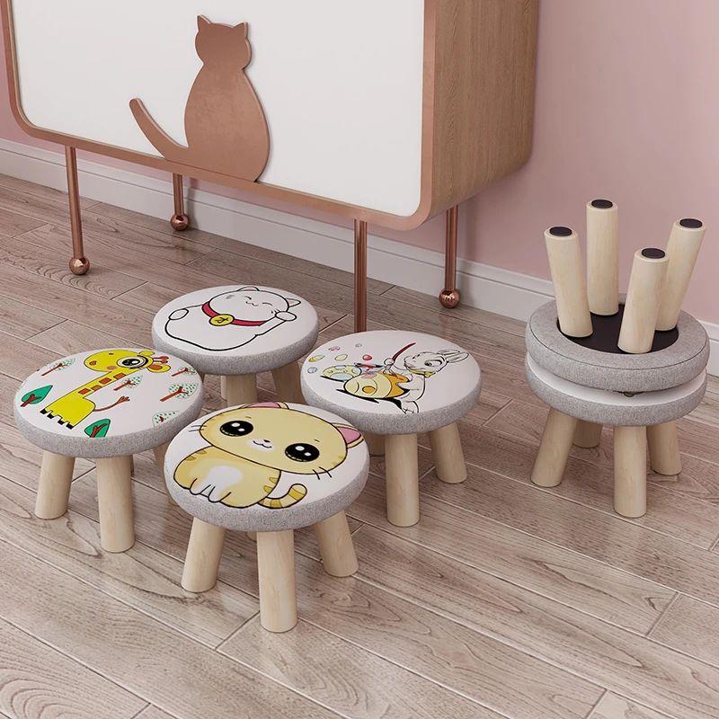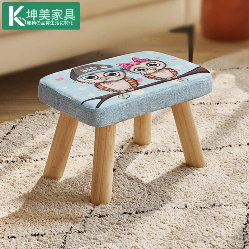 かわいい子供用の実木製ミニスツール - おしゃれなカートゥーンデザインで、リビングや子供部屋にぴったり!赤ちゃんも安心して使える、コンパクトで可愛いソファスツールです。