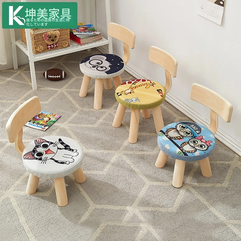 子供用全木製背付きミニスツール|おしゃれで経済的なモダンデザイン|家庭にぴったりのクリエイティブな丸椅子|子どもたちの成長をサポートする快適な座り心地!