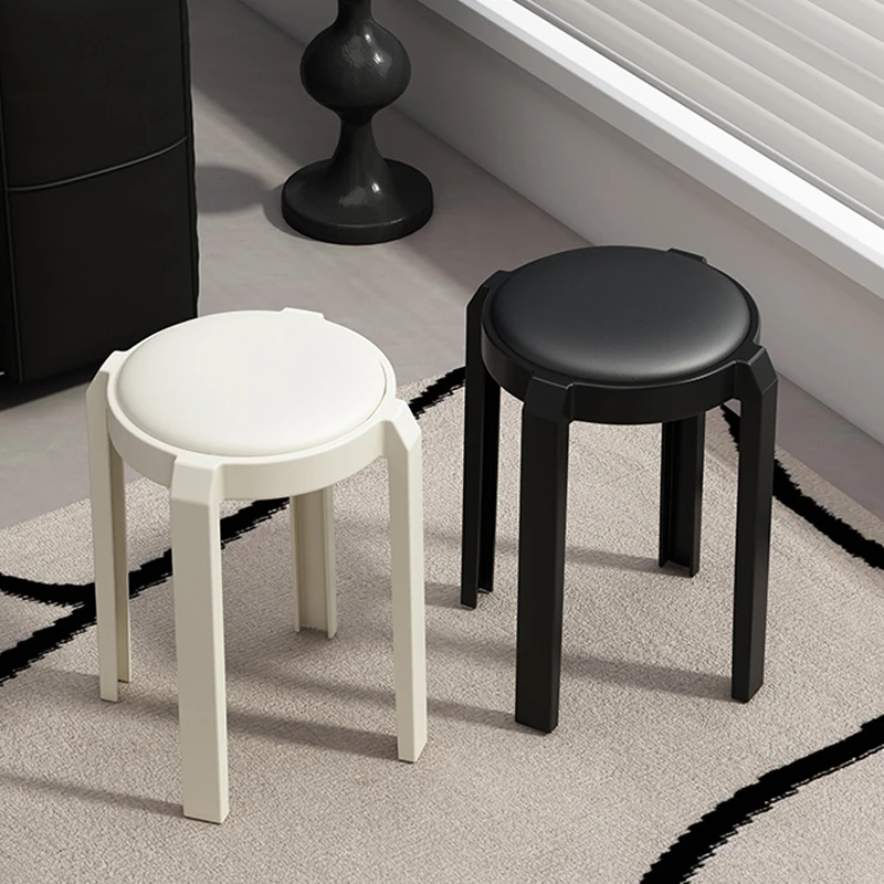 家用プラスチックスツール | 重厚感あるデザインでスタッキング可能!リビングにぴったりなソフトパッケージラウンドスツール | 贅沢な化粧台やダイニングテーブルに最適!