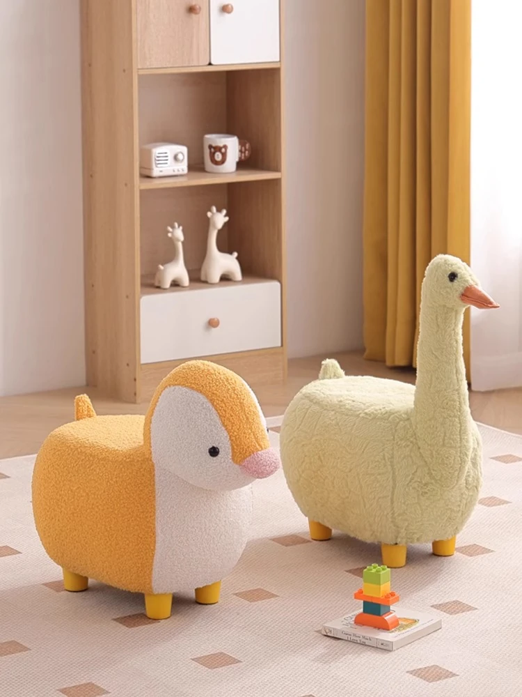 子供用カートゥーンスツール - 玄関の靴を履き替えるのに最適!リビングにもぴったりな可愛いソフトパッケージの小さなスツール、人気のインスタグラムスタイルで、快適な足置きにもなる!