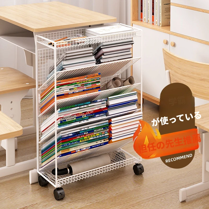 キャスター付きの移動式デスク下書棚 - 教室や学校に最適!おしゃれで機能的、絵本や文房具をすっきり収納できる多段階ラック。子供たちの学習スペースをもっと楽しく、便利に!