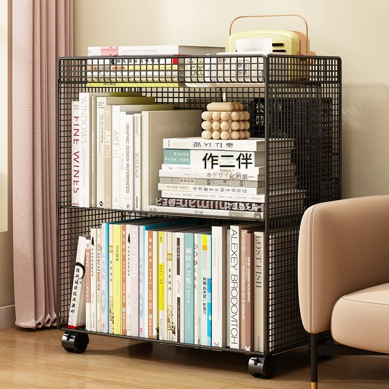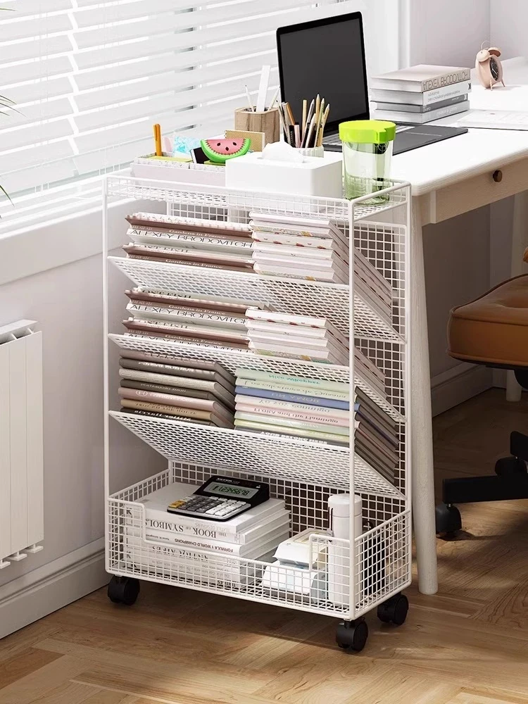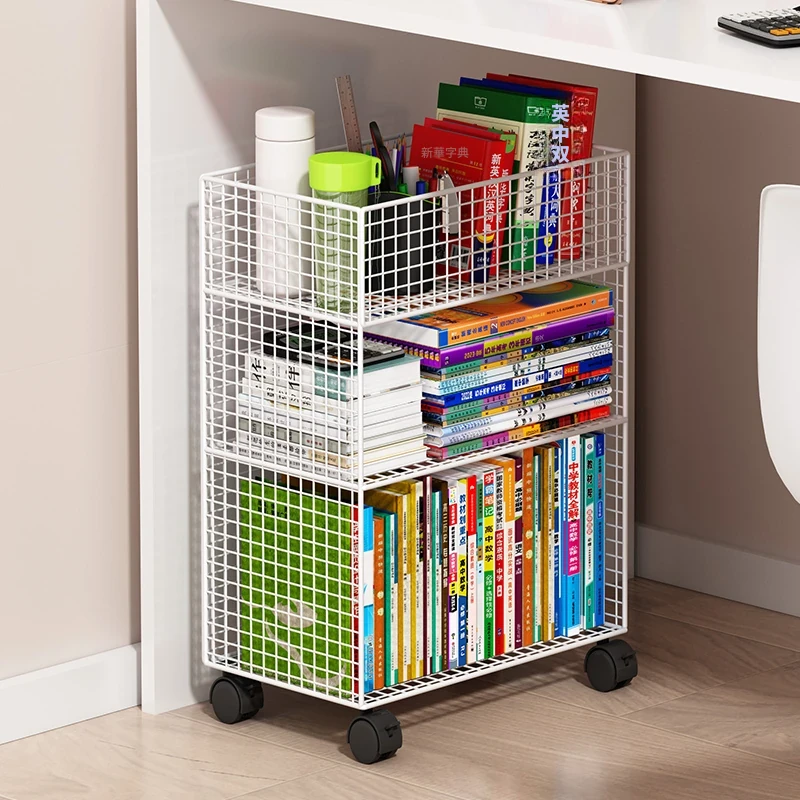 移動式キャスター付き書棚 - 学生必見の多層収納ラック!デスク横にぴったり、書籍や小物をすっきり整理!おしゃれで便利な収納スペースを手に入れよう!