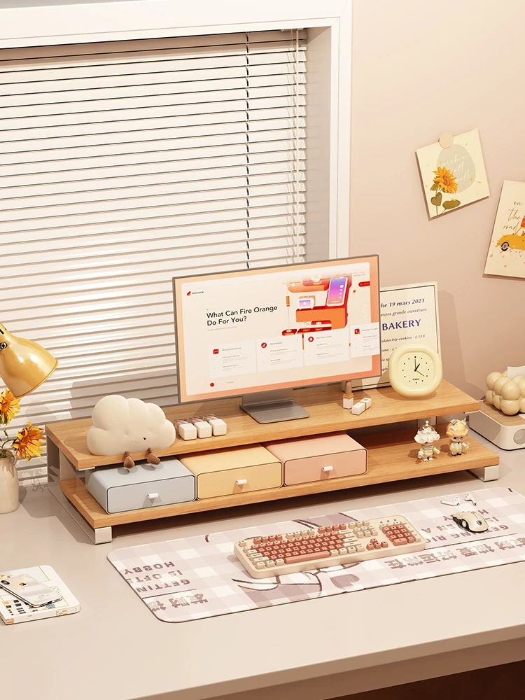 デスク上の整理整頓を実現!ディスプレイ昇降スタンド - パソコンモニター用の頑丈なサポート、ノートパソコンの延長スタンド付き。快適な作業空間を手に入れよう!