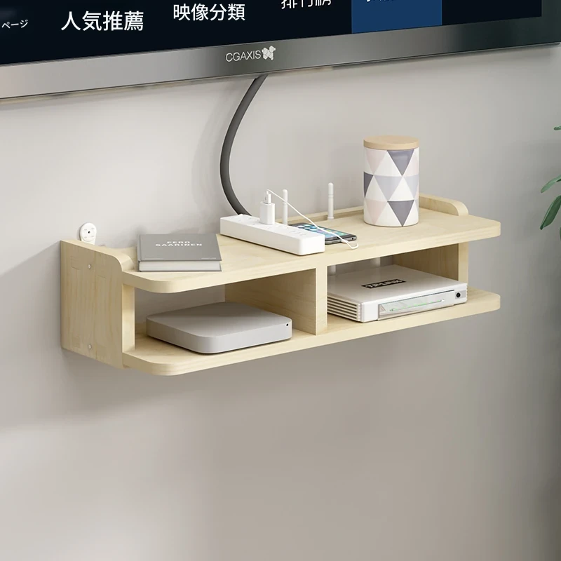 壁掛け式無孔設計!実木製ルーター収納ラック - テレビボックスをおしゃれに整理!リビングに最適なWi-Fi収納ボックス。シンプルで機能的、インテリアにもぴったり!
