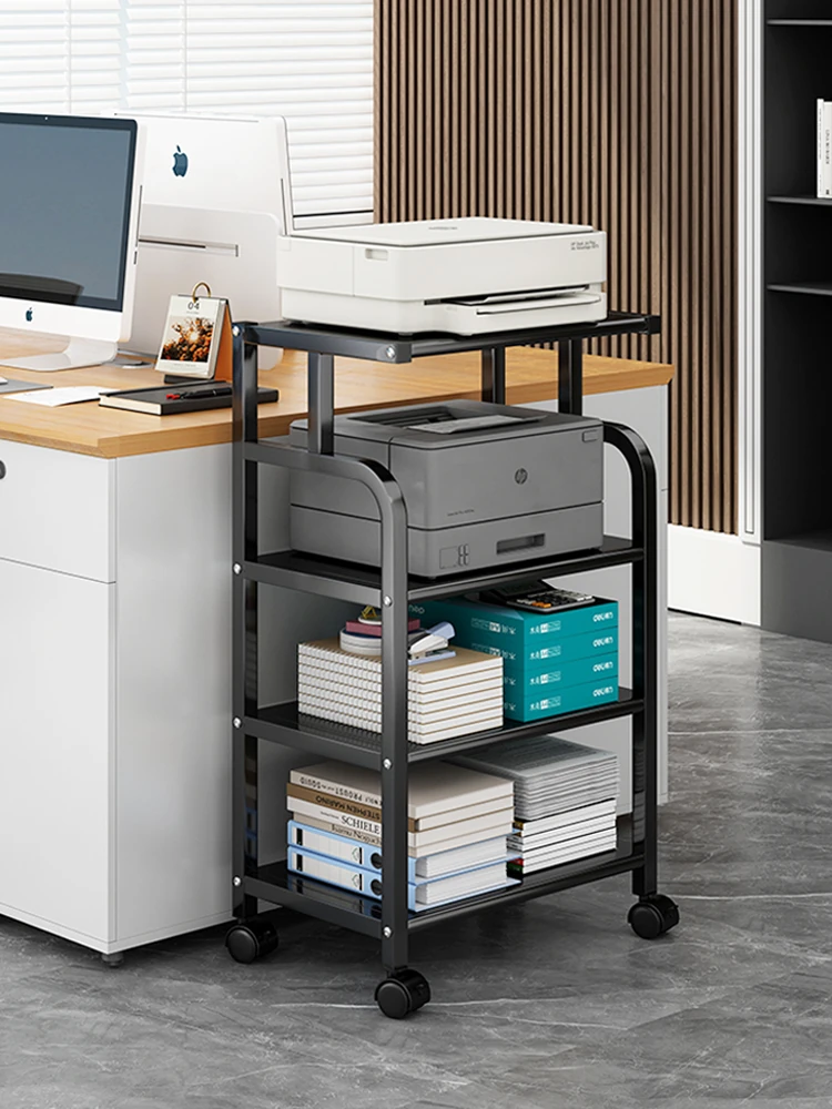 オフィス用可動式PCスタンド&プリンター収納ラック - 多層設計でスペースを有効活用!スタイリッシュで実用的なデザイン、あなたの作業環境を整えます。