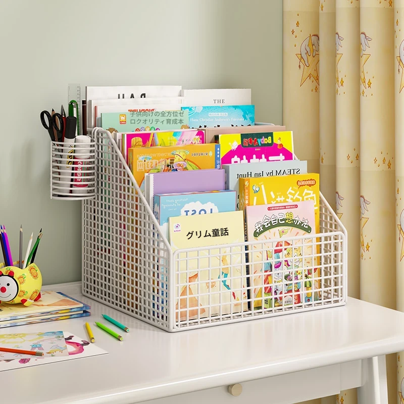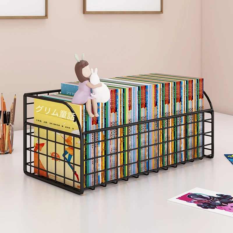 鉄製書籍収納ボックス - デスク上に最適なシンプルな子供用本棚!学生や赤ちゃんのための多層書庫で、整理整頓をサポートし、学びの空間をおしゃれに演出します。