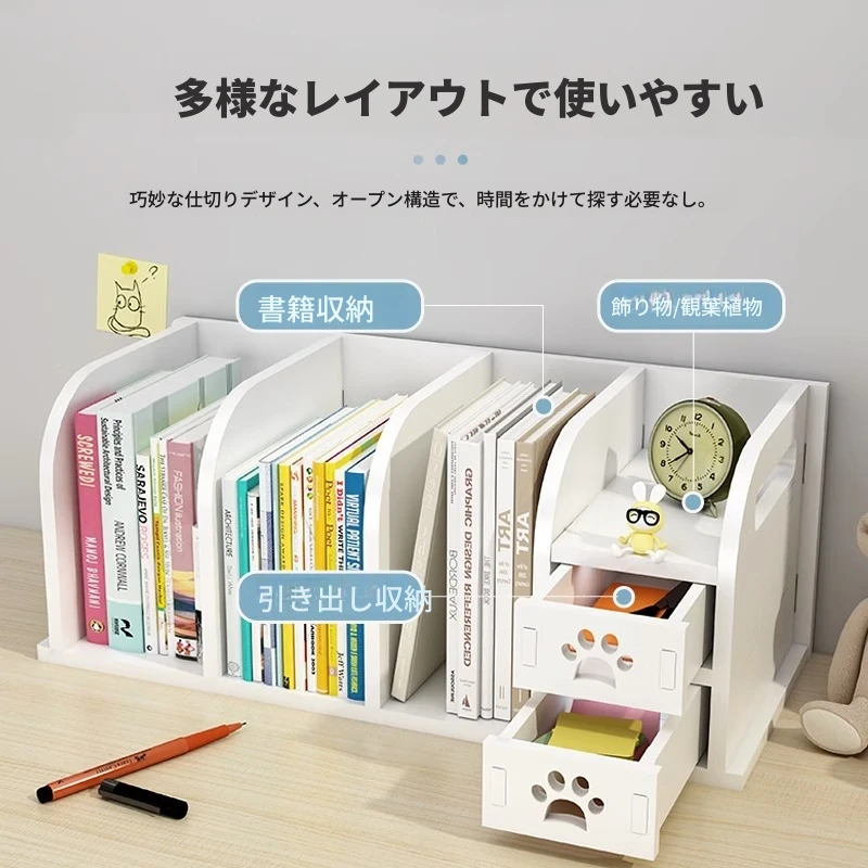 簡易学生用デスク上書棚|寮やオフィスに最適なデスク収納ラック|多層式の物置き|コーナーにもぴったりなコンパクトな書棚で、机上をスッキリ整理!