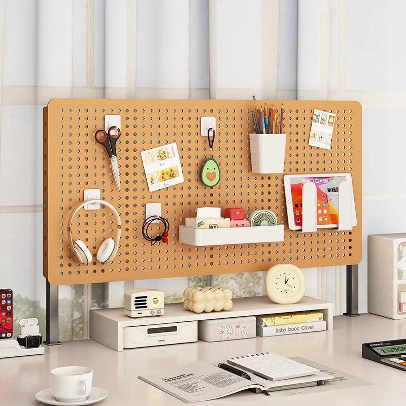 スタンド式デスク用穴あきボード収納ラック - 学生に最適!ネジ不要で簡単設置、勉強道具もすっきり整理。おしゃれで機能的なデスク周りを実現!