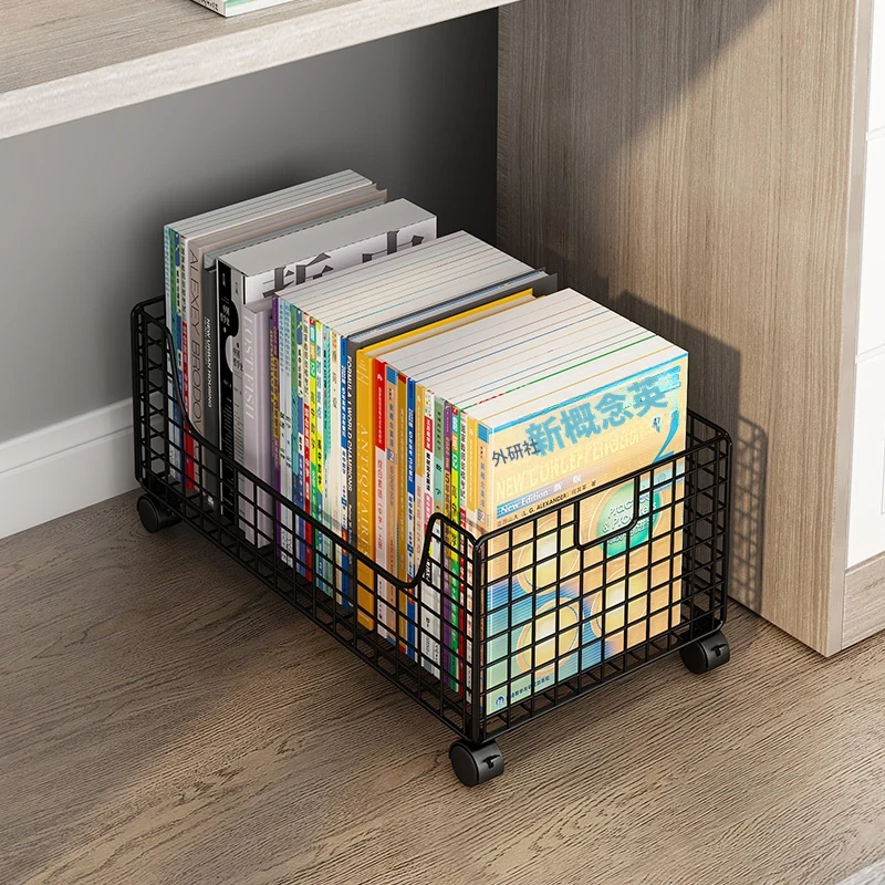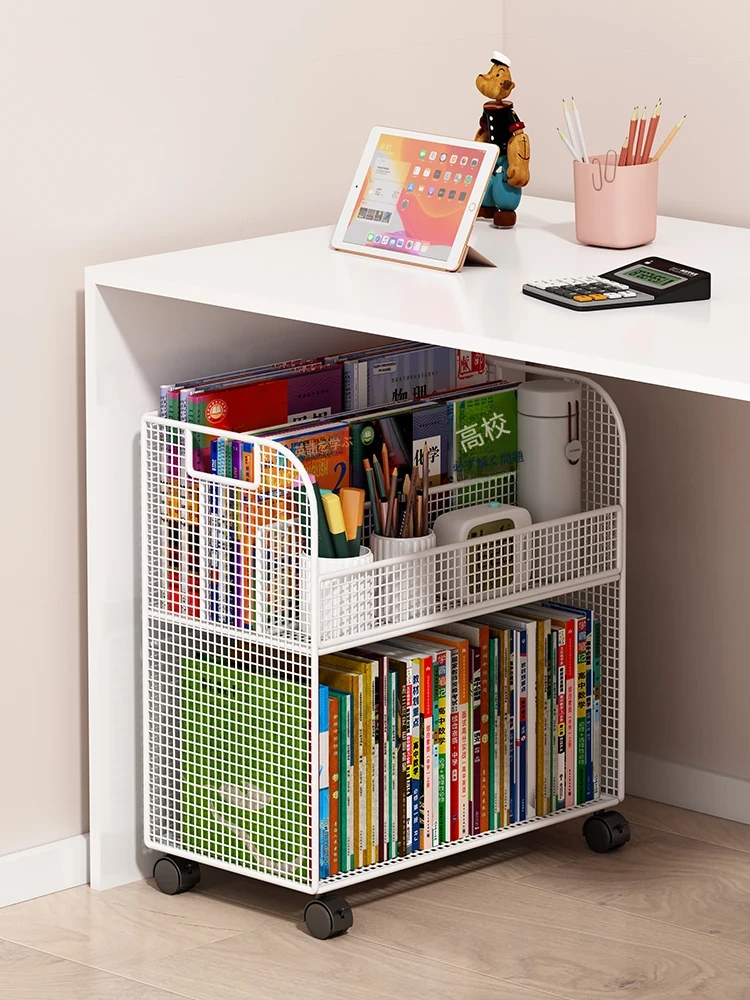 移動式多機能ブックシェルフ - 車輪付きで簡単収納!子供の書斎に最適なデスク下収納ラック。教科書や文房具をスッキリ整理!