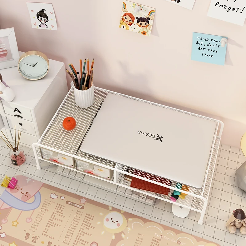 Elevated Desktop Organizer Stand - Multi-functional Laptop & Monitor Riser for Office and Dorm Use - Space-Saving Floating Shelf for Enhanced Productivity