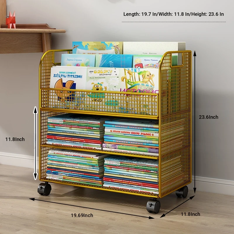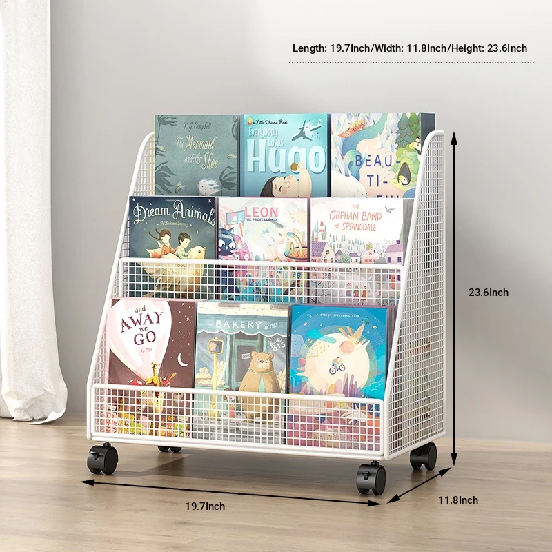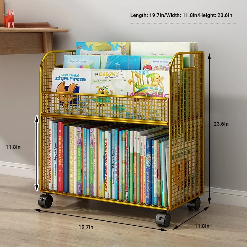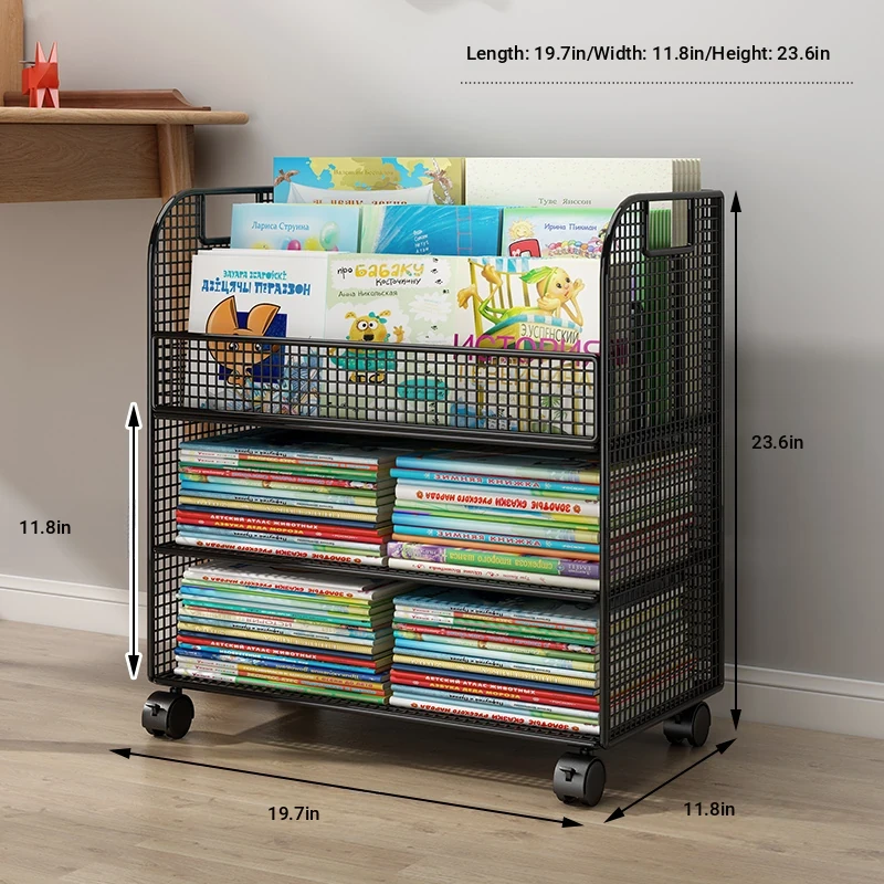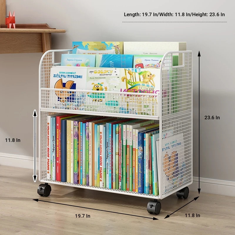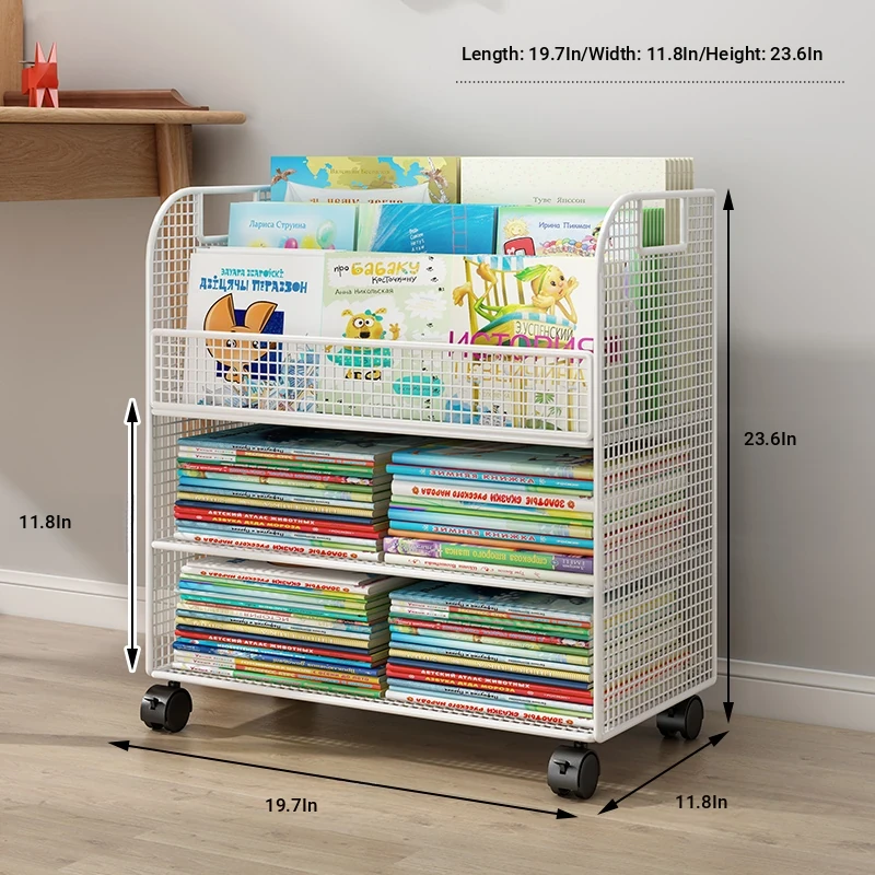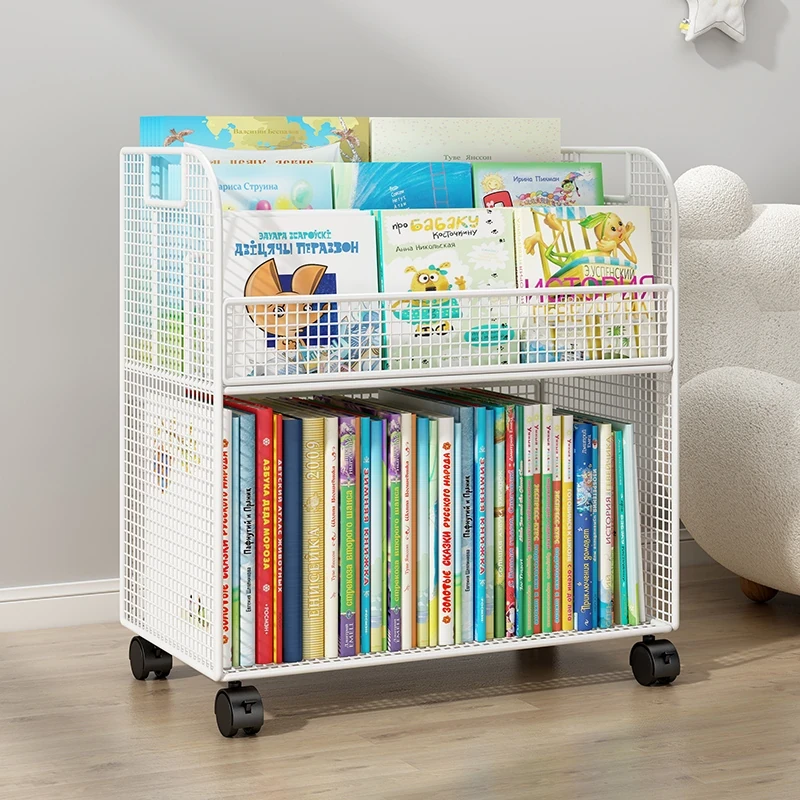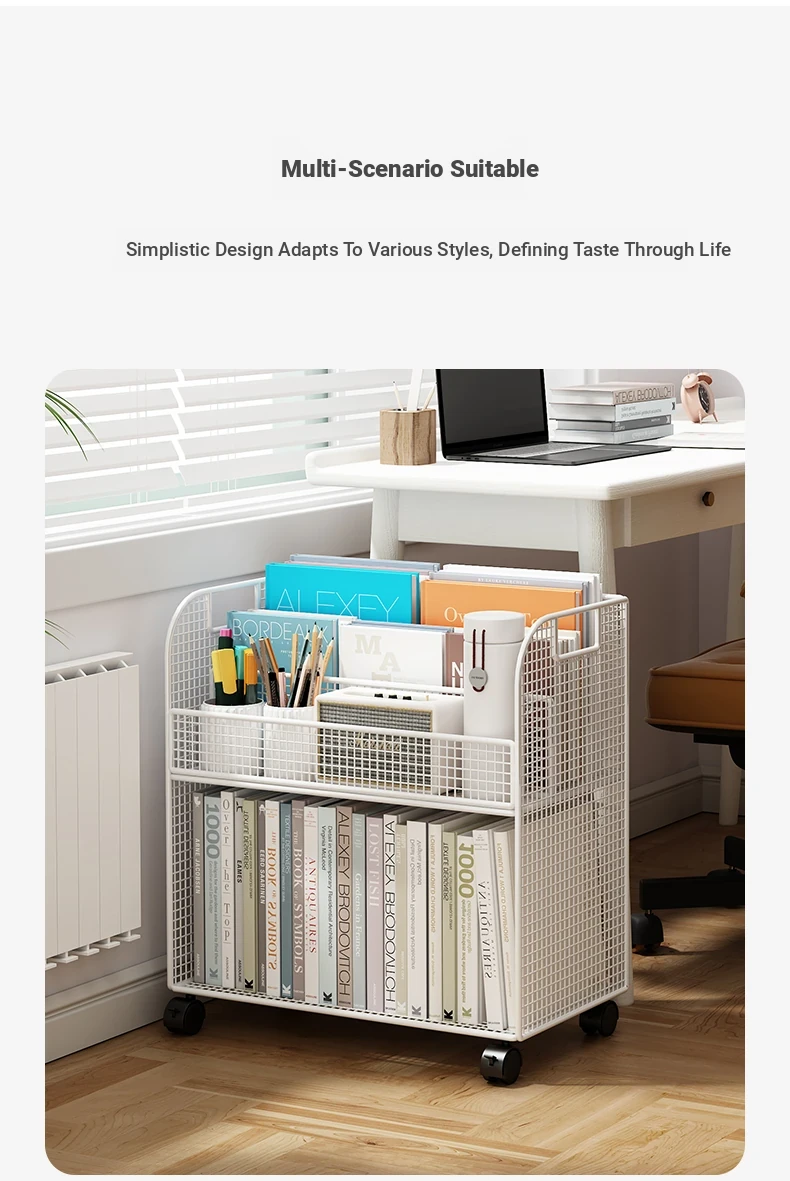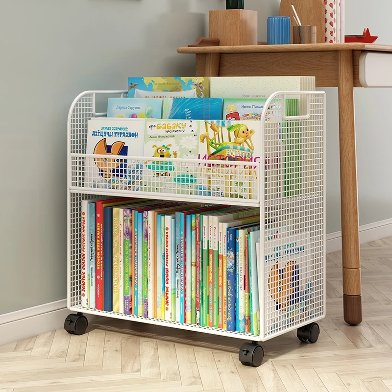 Mobile Side Bookshelf with Wheels - Portable Storage Cart for Students, Ideal for Desk Organization and Picture Book Display
