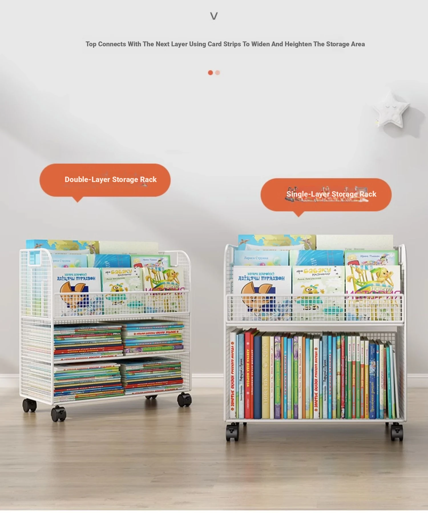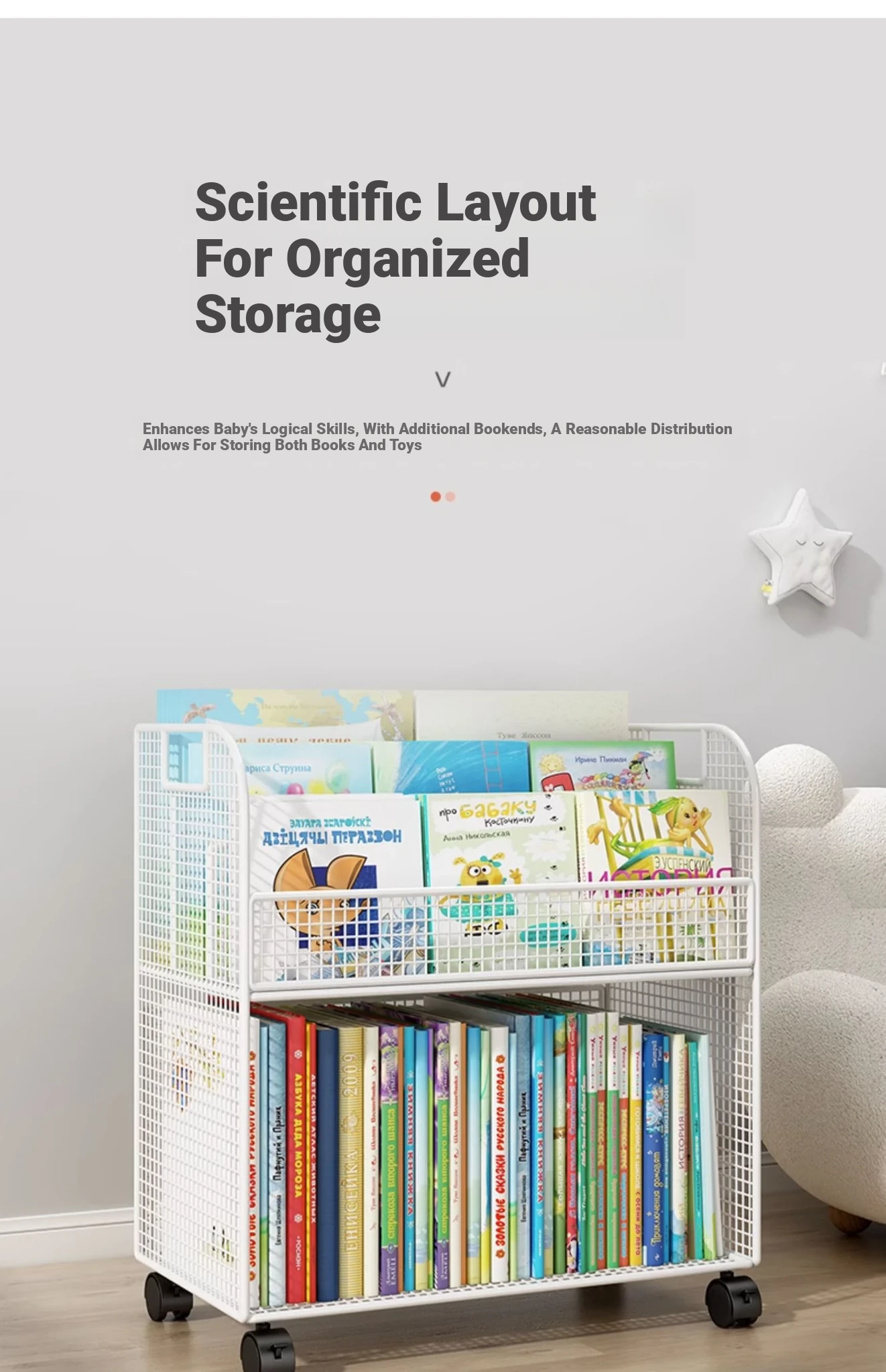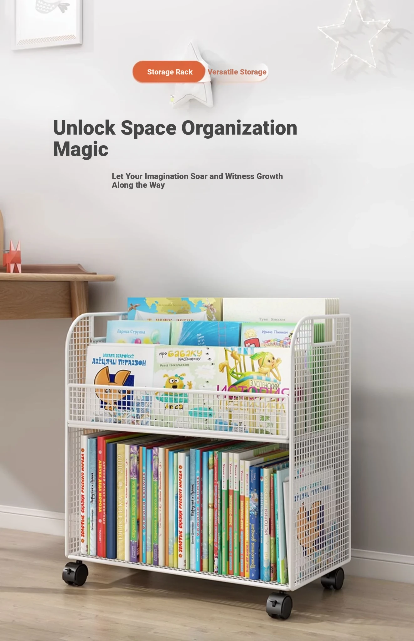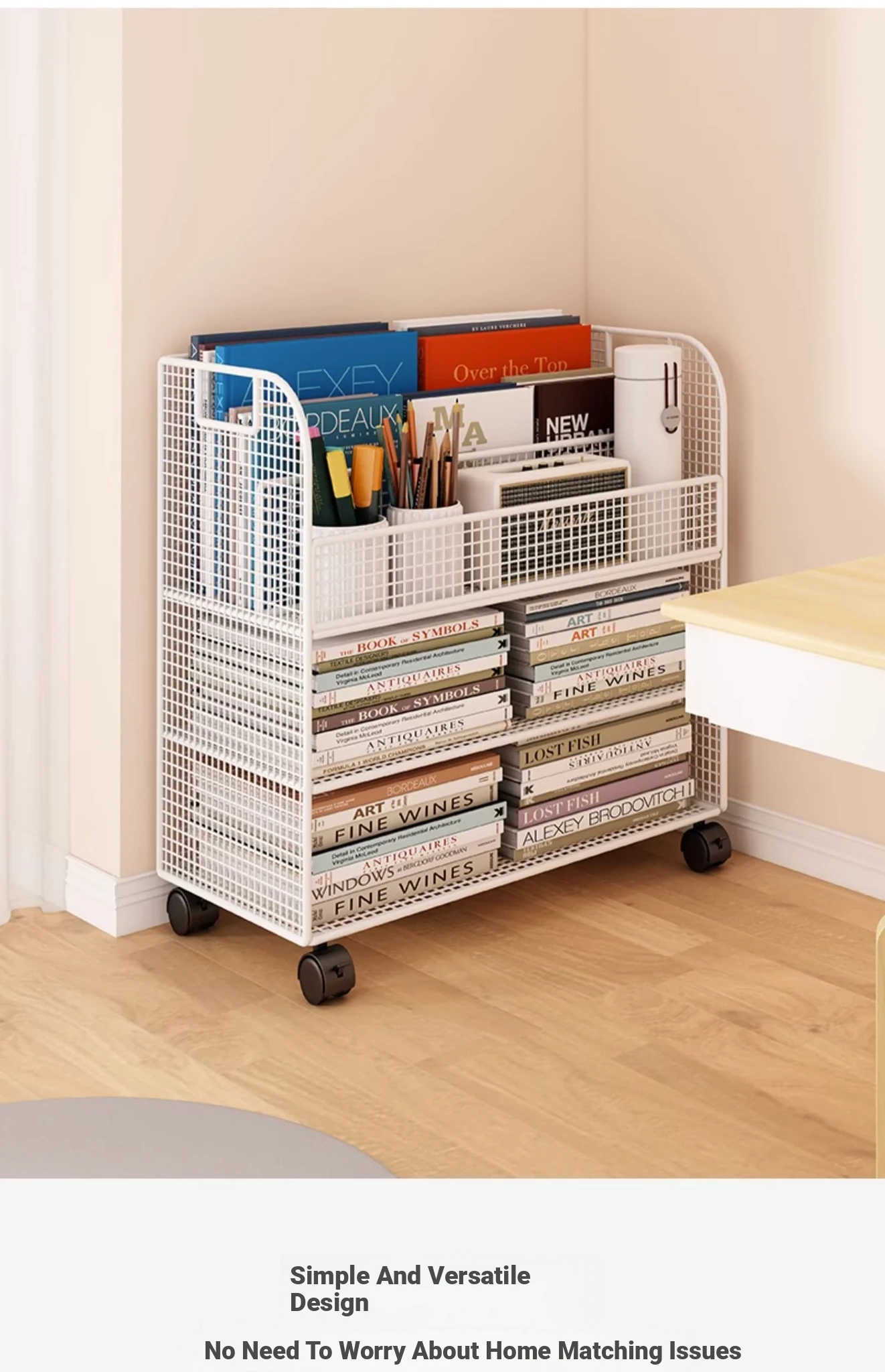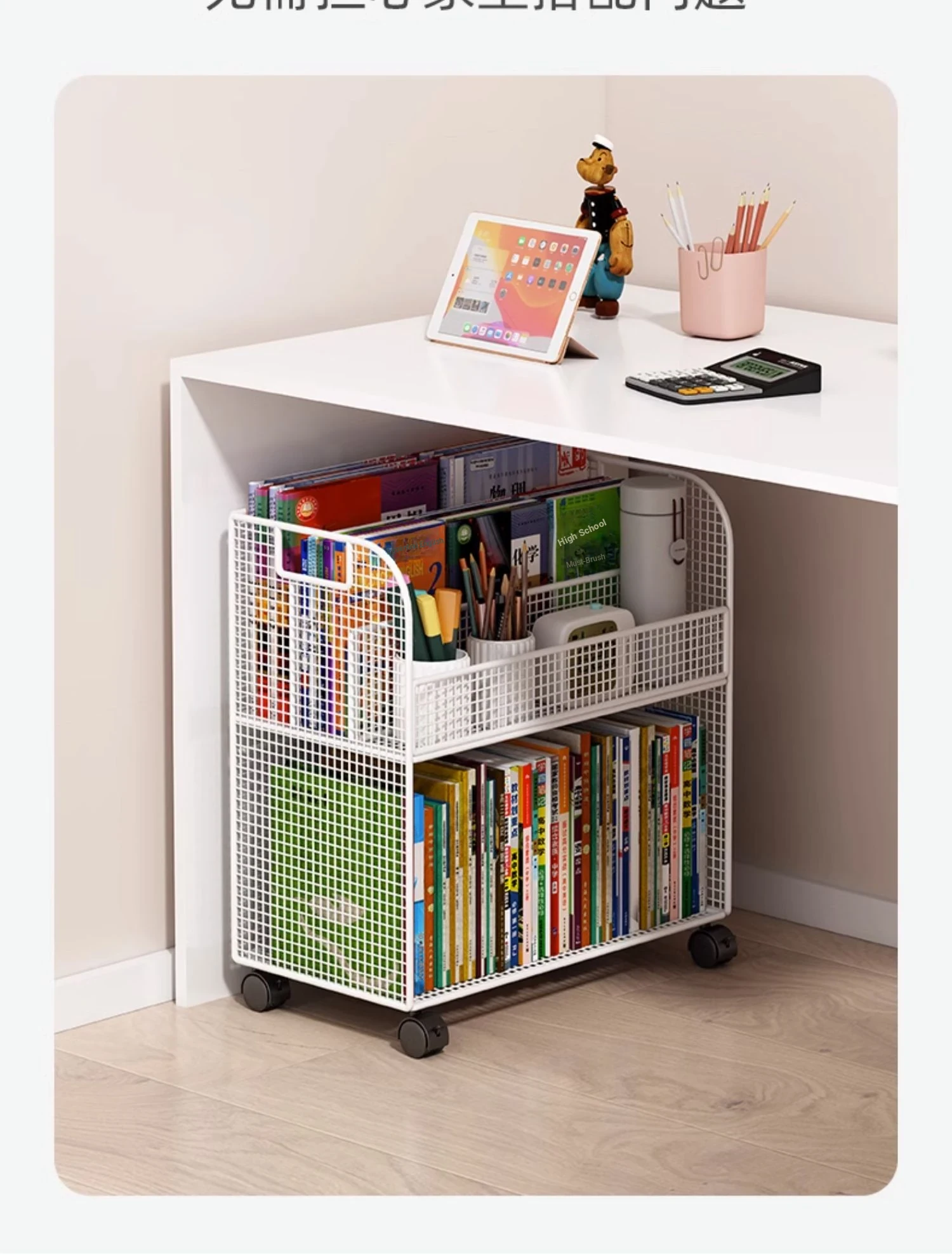 Mobile Side Bookshelf with Wheels - Portable Storage Cart for Students, Ideal for Desk Organization and Picture Book Display