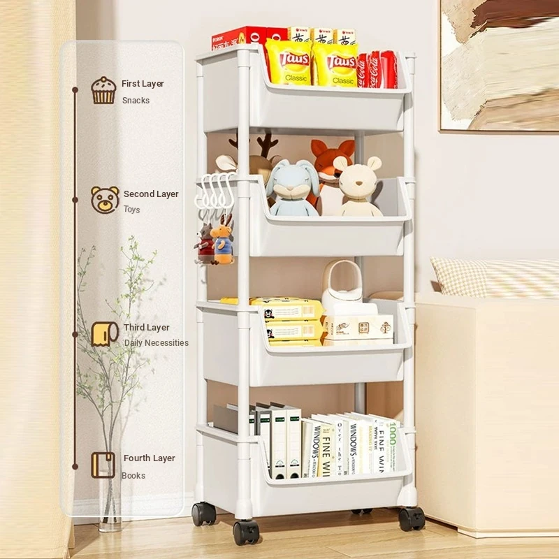 Multi-Functional Rolling Kitchen Shelf - Versatile Floor Storage Cart for Home Use, Perfect for Organizing Snacks and Books with Multiple Layers