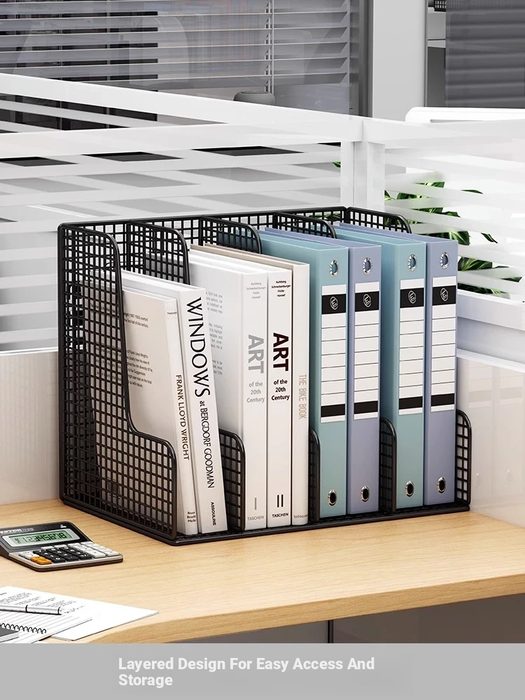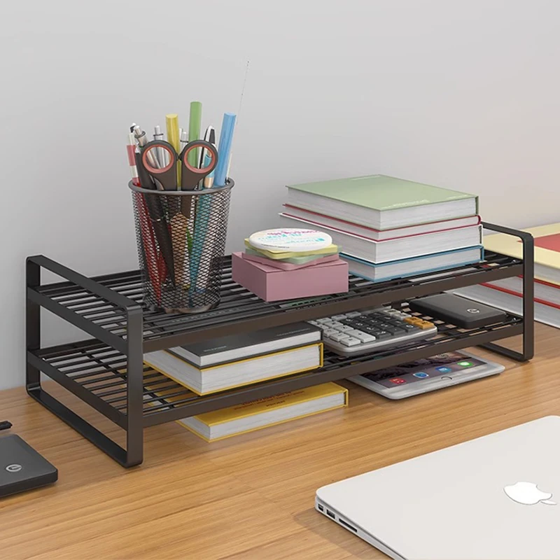 Stylish Iron Desktop Organizer - Multi-Layer Storage Rack for Office Documents and Dorm Room Essentials - Perfect for Keeping Your Desk Tidy and Organized!