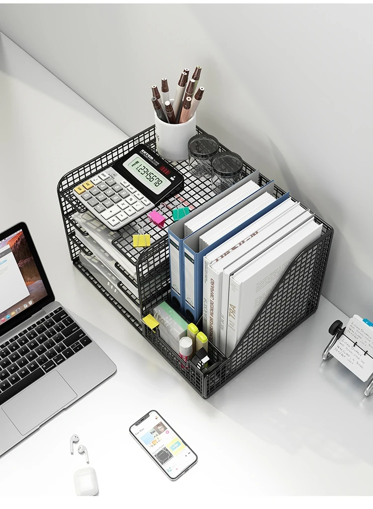 A3A4対応デスク用ファイルスタンド|書類整理に最適!金属製のスタイリッシュなデザインで、オフィスや自宅のデスク周りをスッキリ整頓!便利な収納で作業効率アップ!