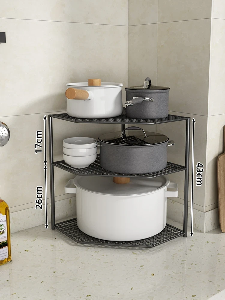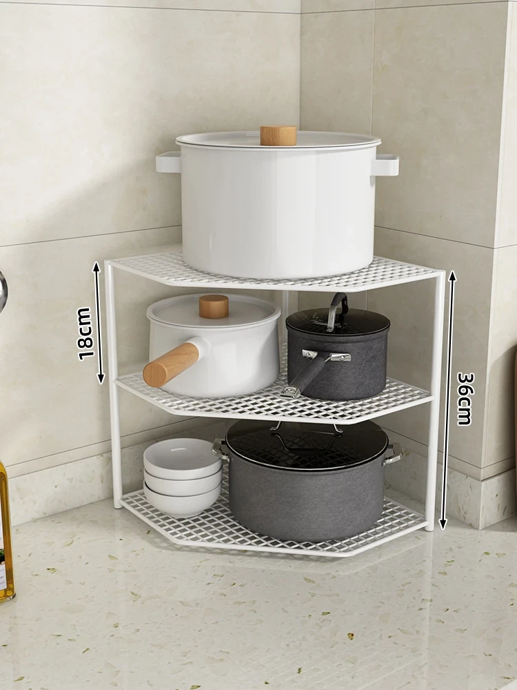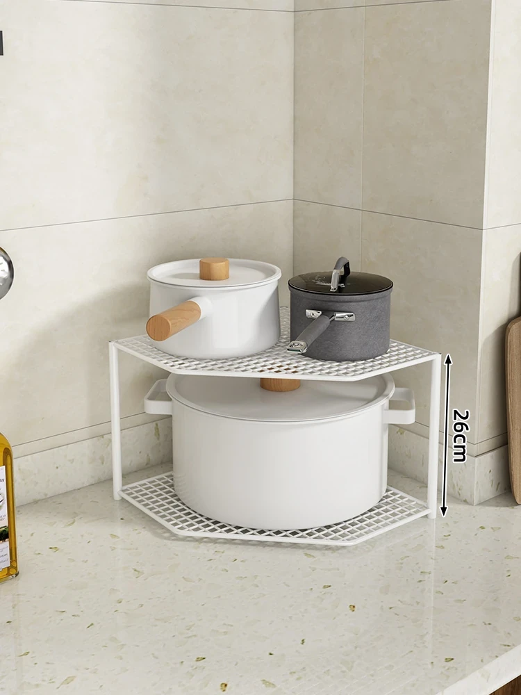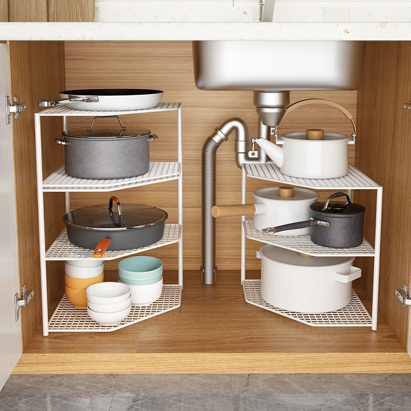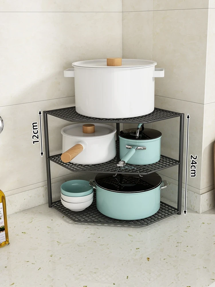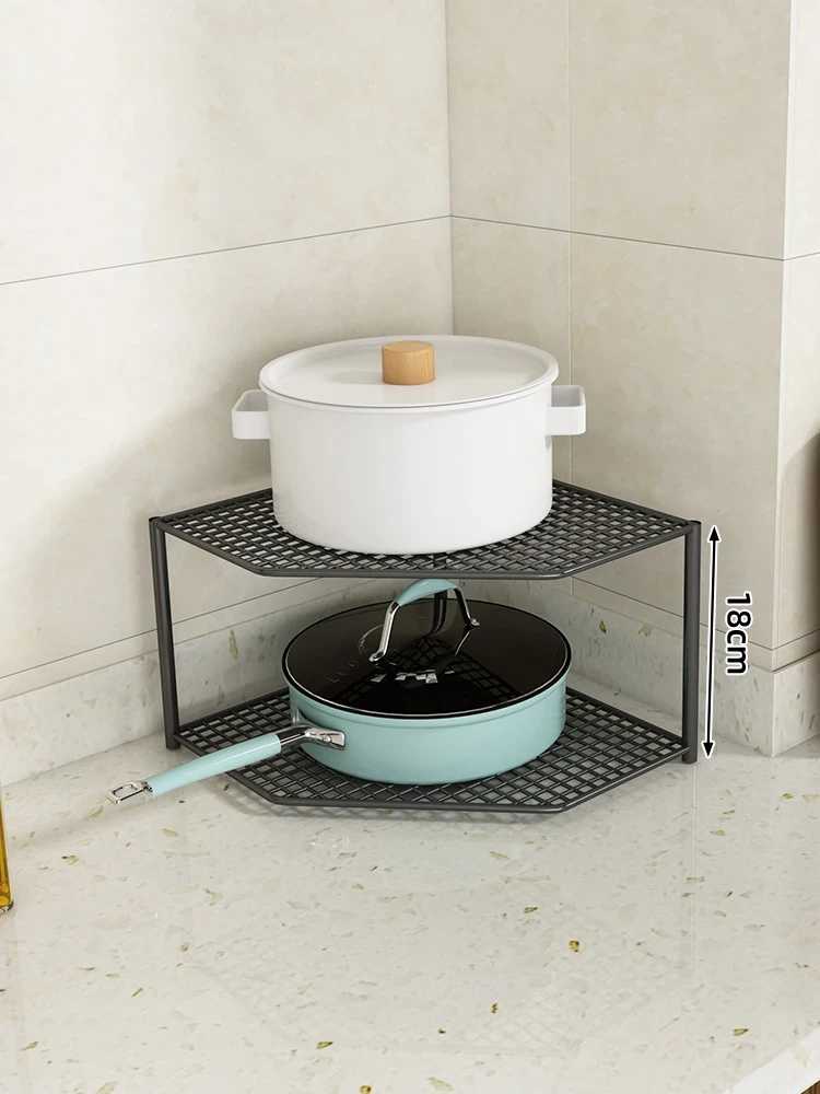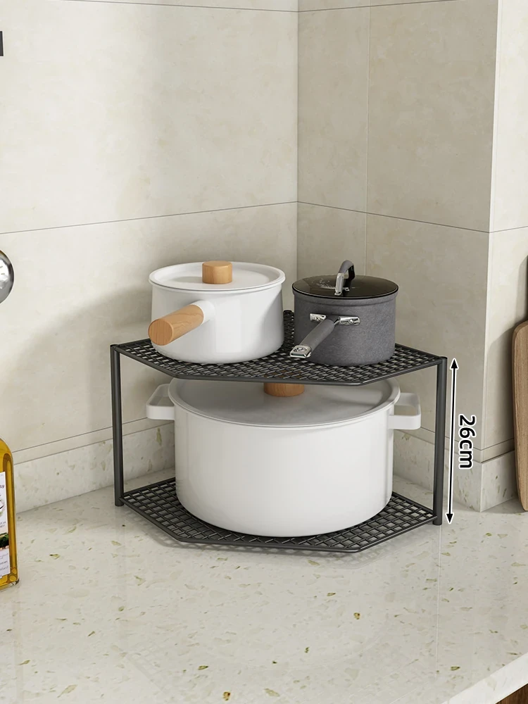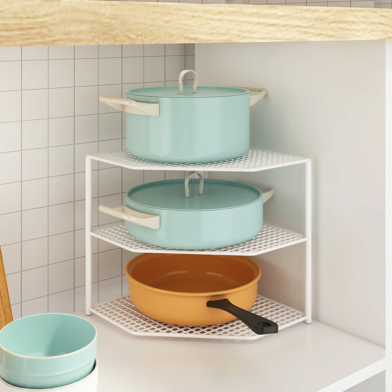 キッチン用鍋収納ラック|コーナーにぴったりなスペース節約型|水槽下やキャビネットに最適な多層設計で、整理整頓が簡単!あなたのキッチンをもっとスッキリさせましょう!