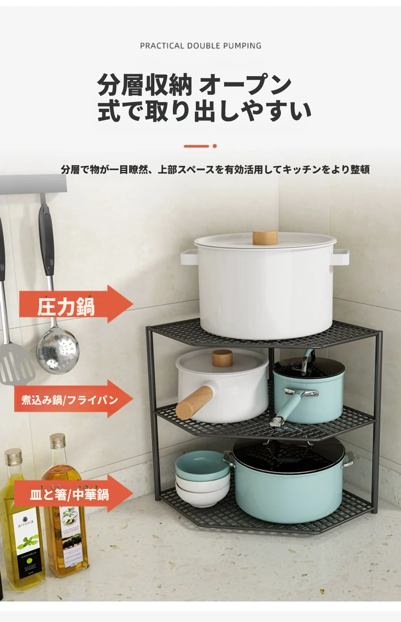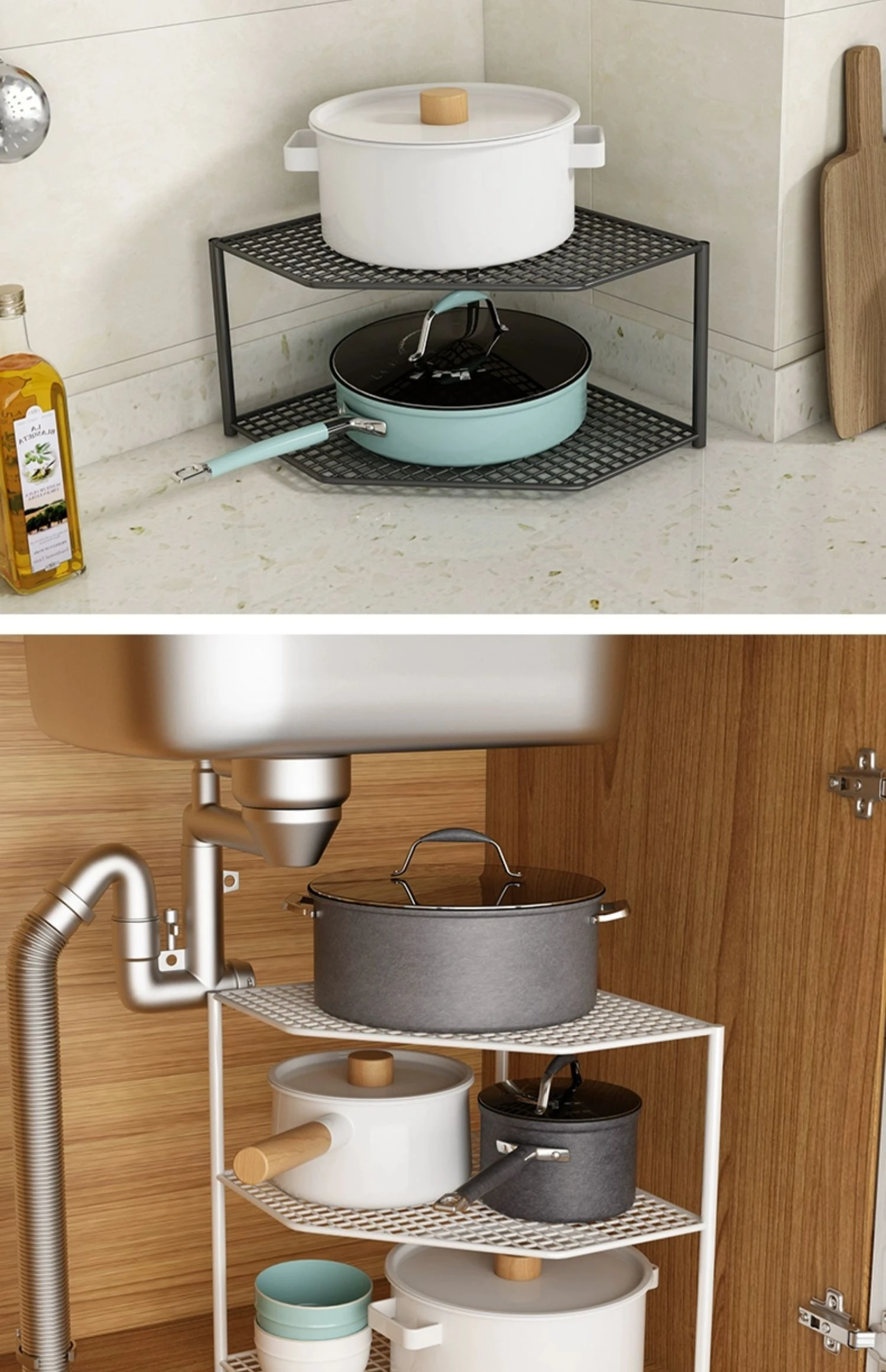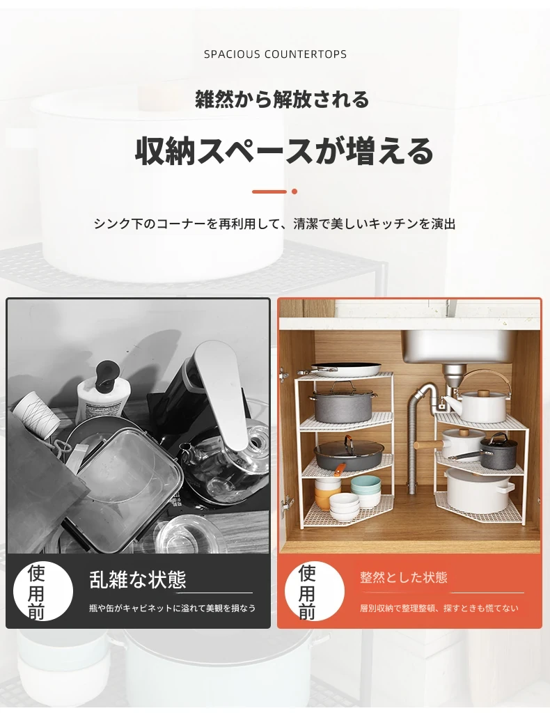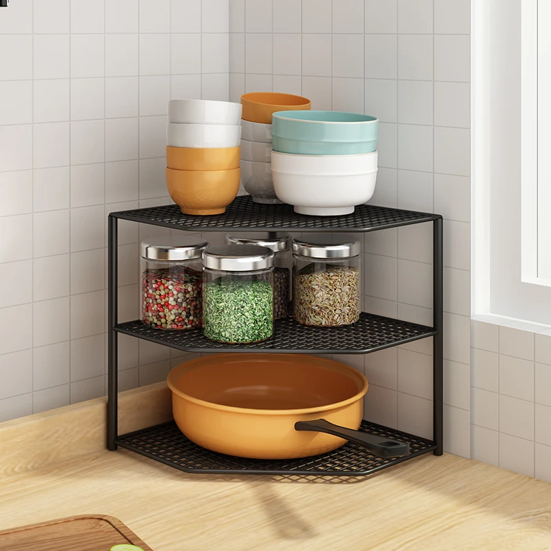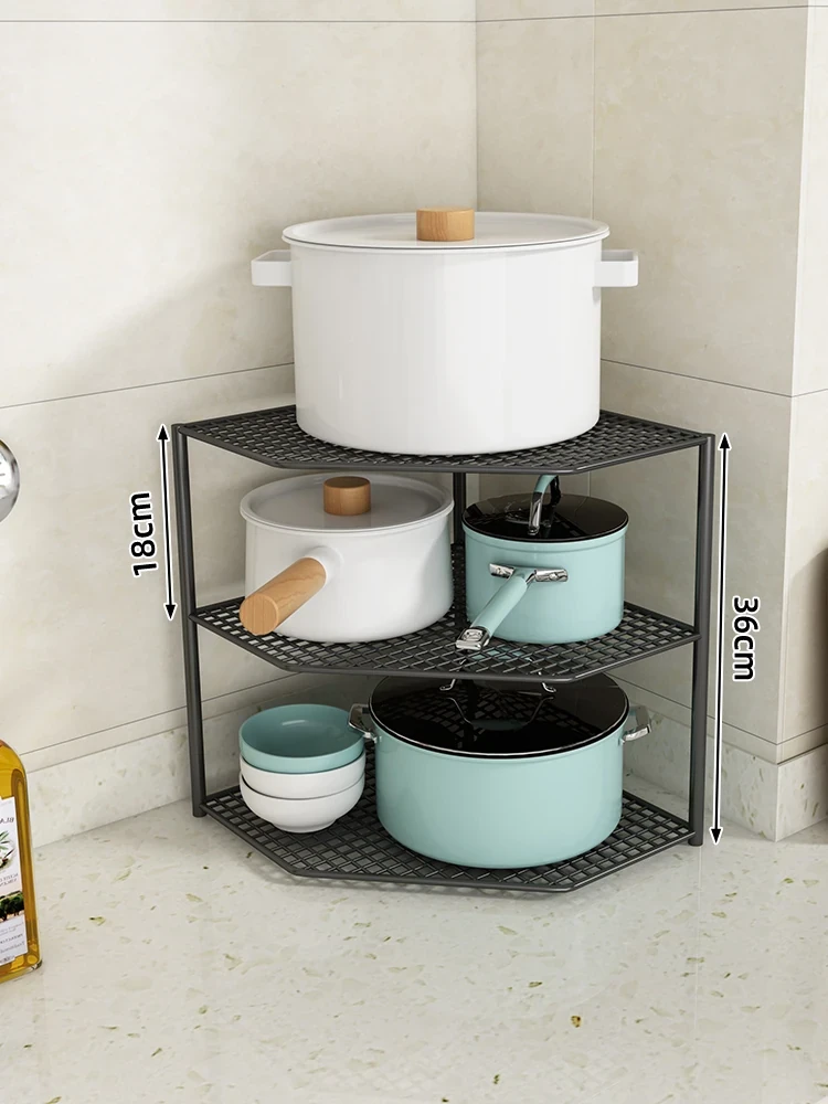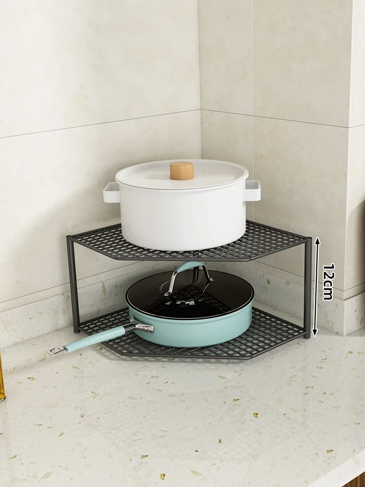 キッチン用鍋収納ラック|コーナーにぴったりなスペース節約型|水槽下やキャビネットに最適な多層設計で、整理整頓が簡単!あなたのキッチンをもっとスッキリさせましょう!