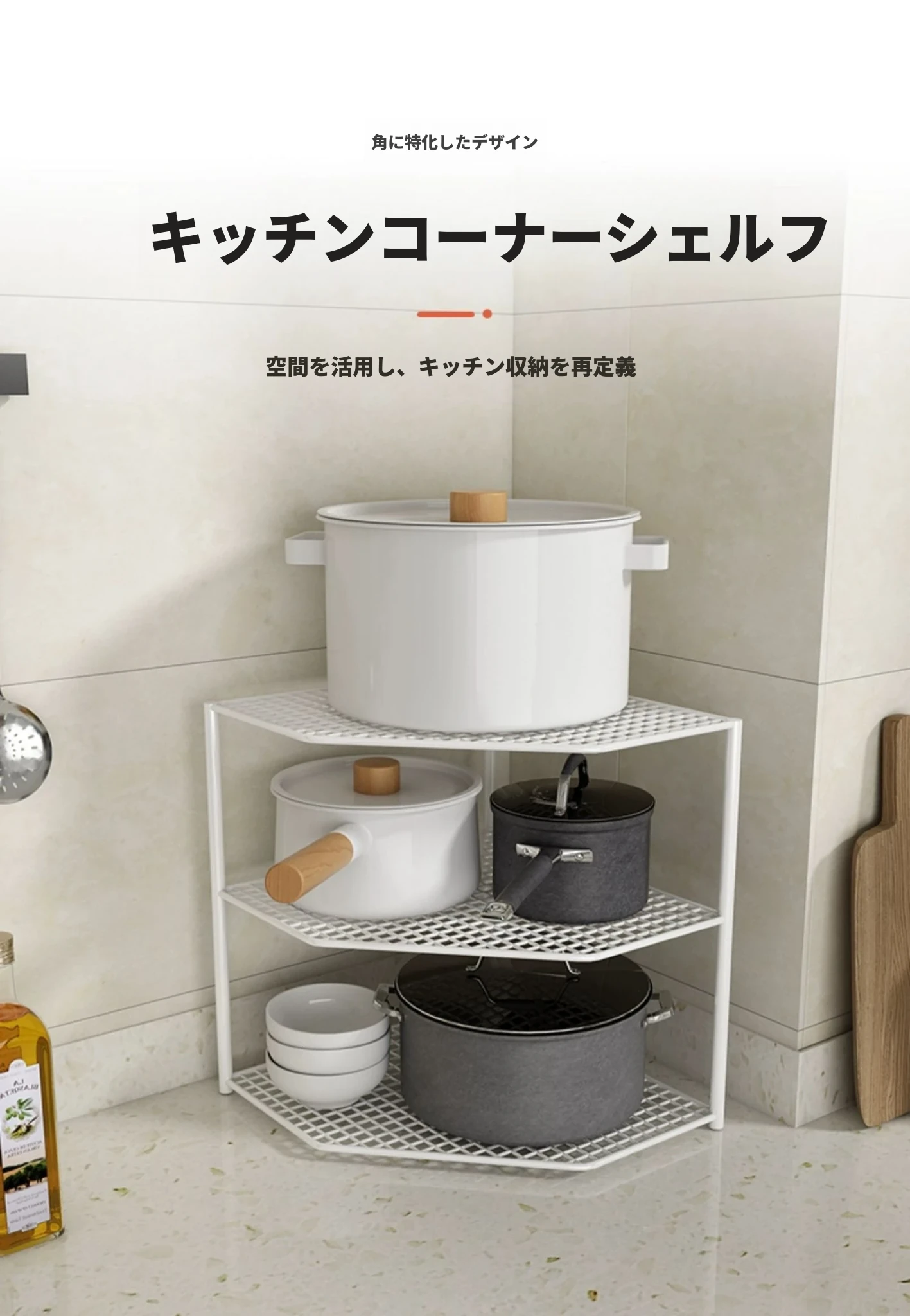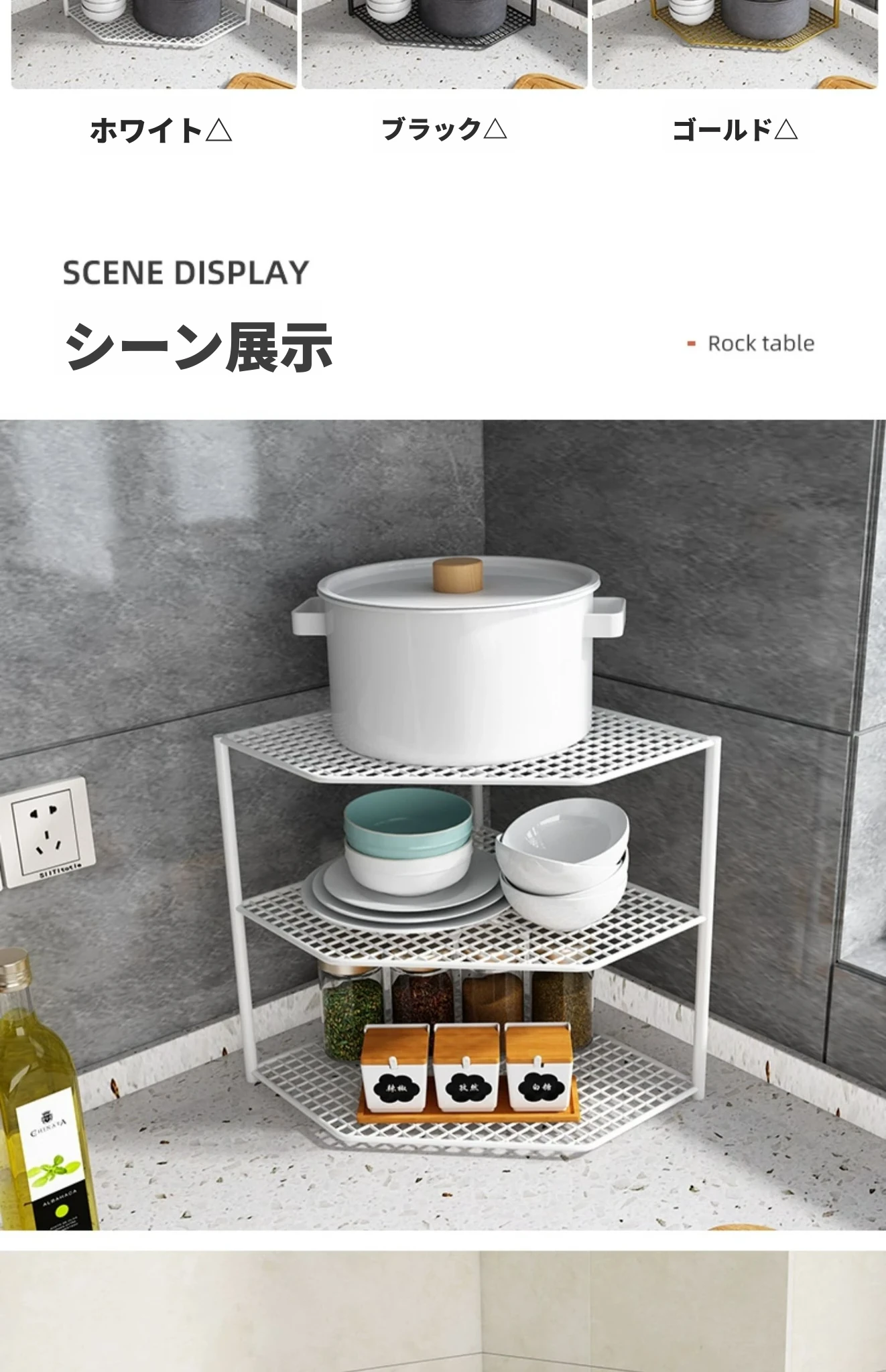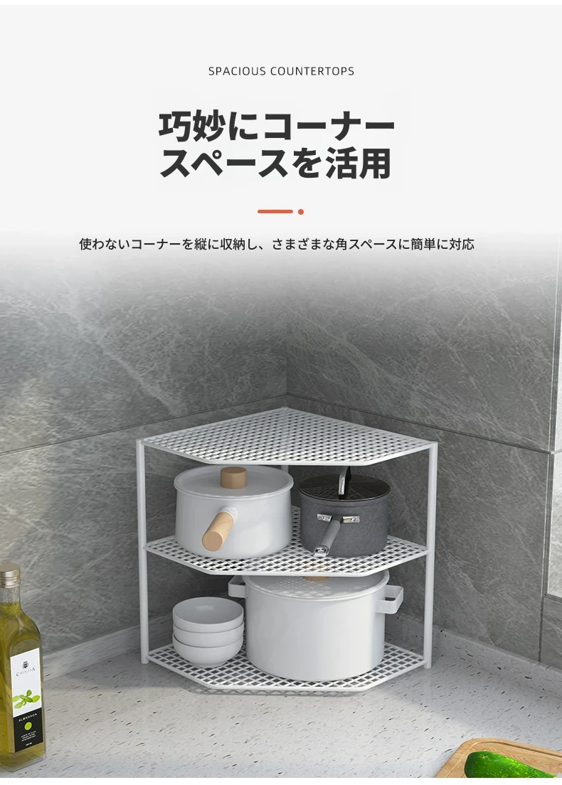 ホワイトの三段コーナーラック-大アップグレードタイプ