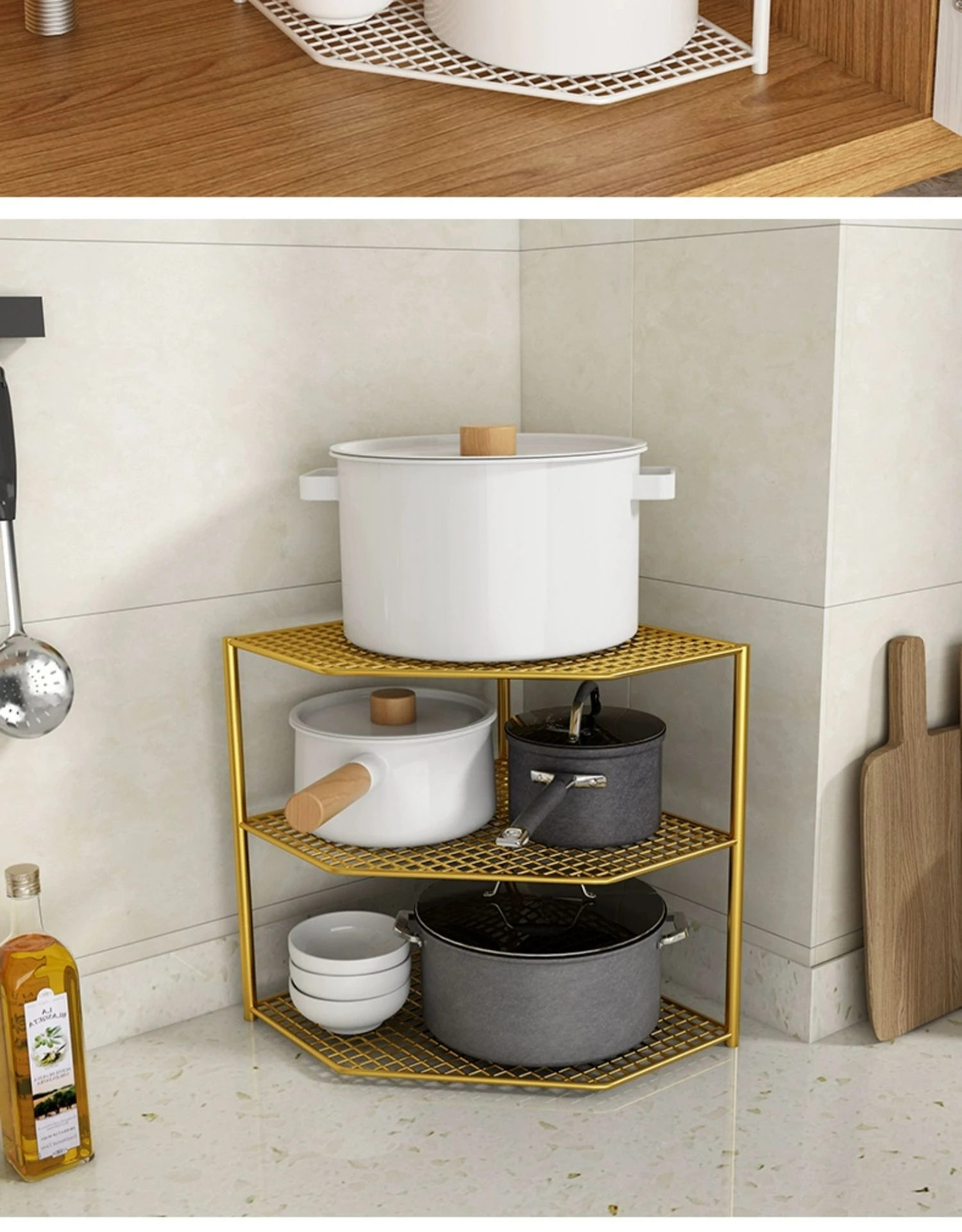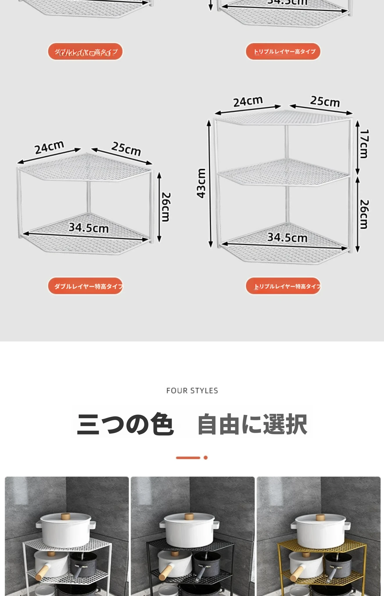 ゴールドの三段コーナーラック-標準タイプ