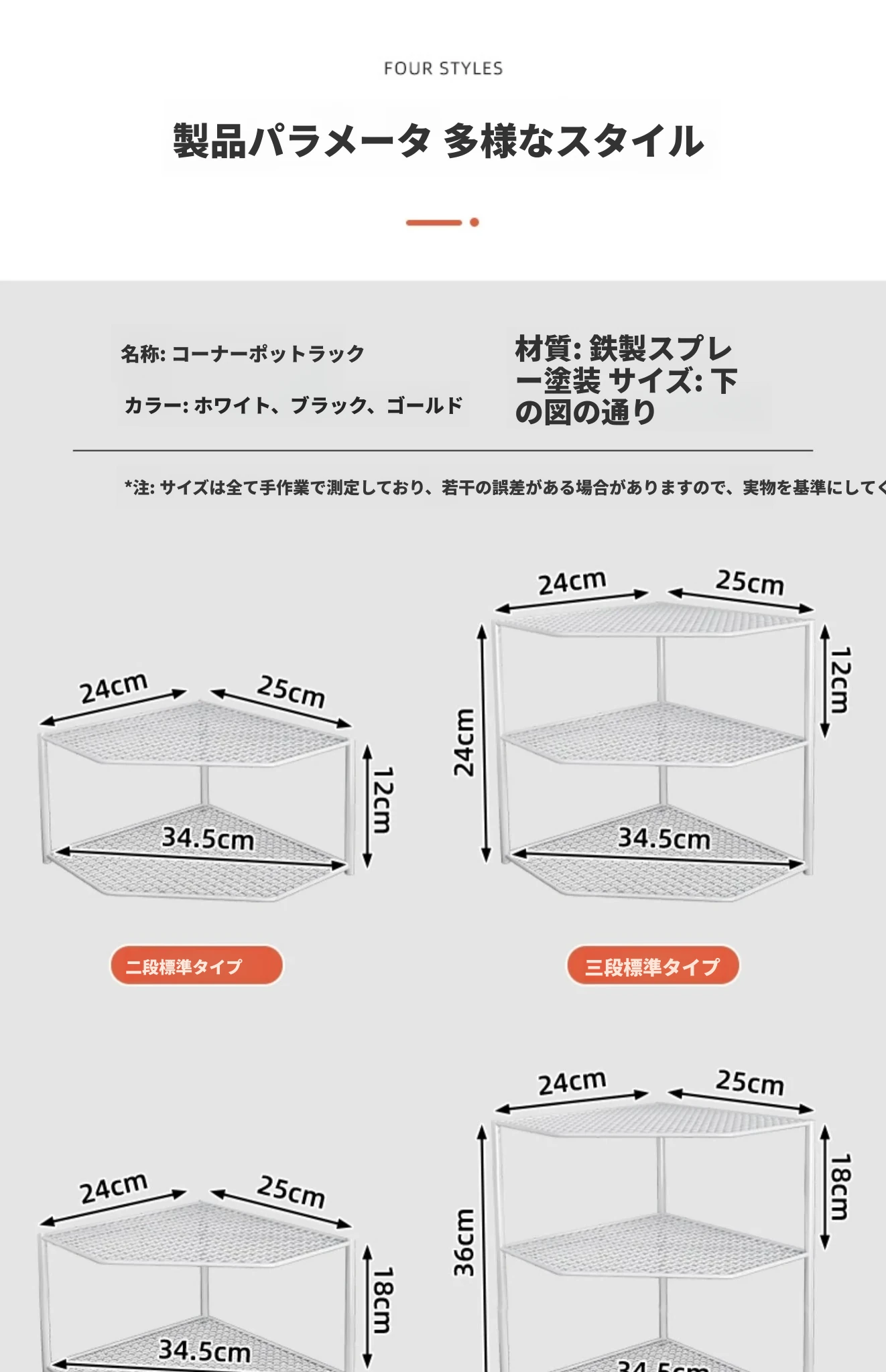 ブラックの三段コーナーラック-標準タイプ