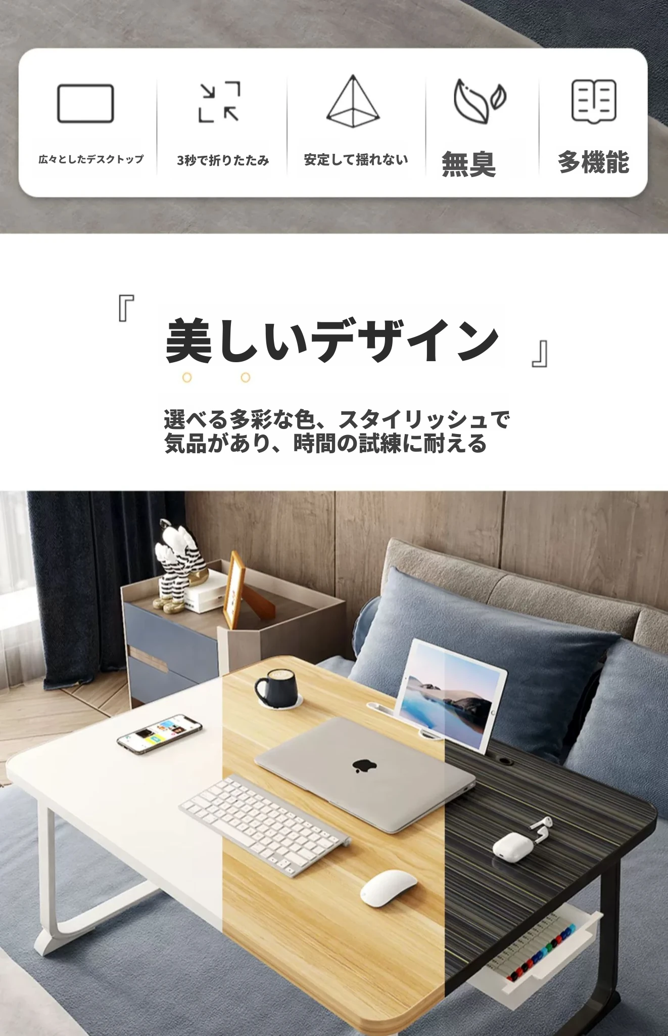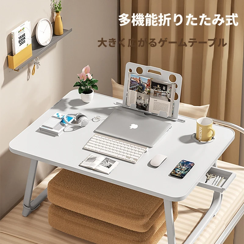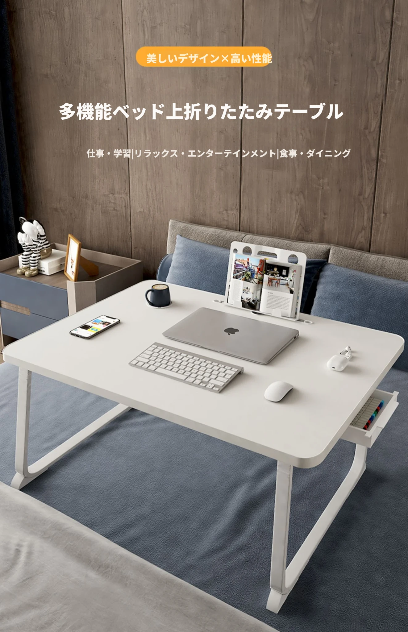 折りたたみ式ベッドサイドテーブル - 学生寮に最適なライティングデスク!膝の上で使えるノートパソコンデスク、家庭学習や読書に最適なアイテム!快適な作業スペースを提供します。