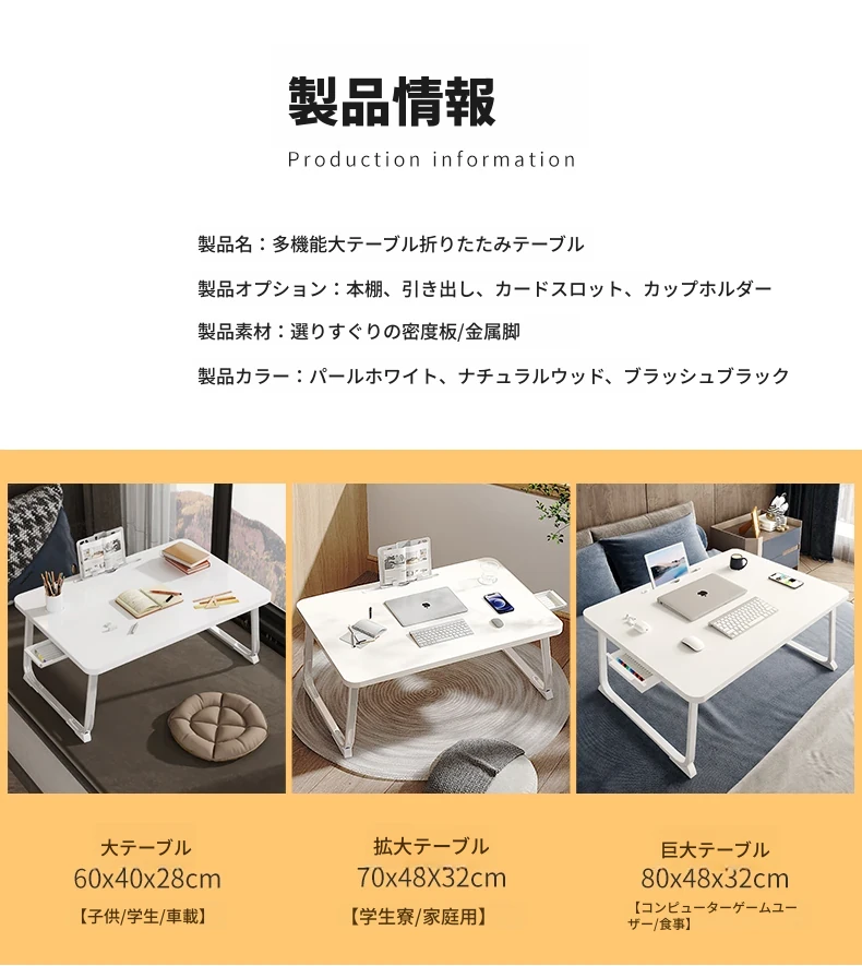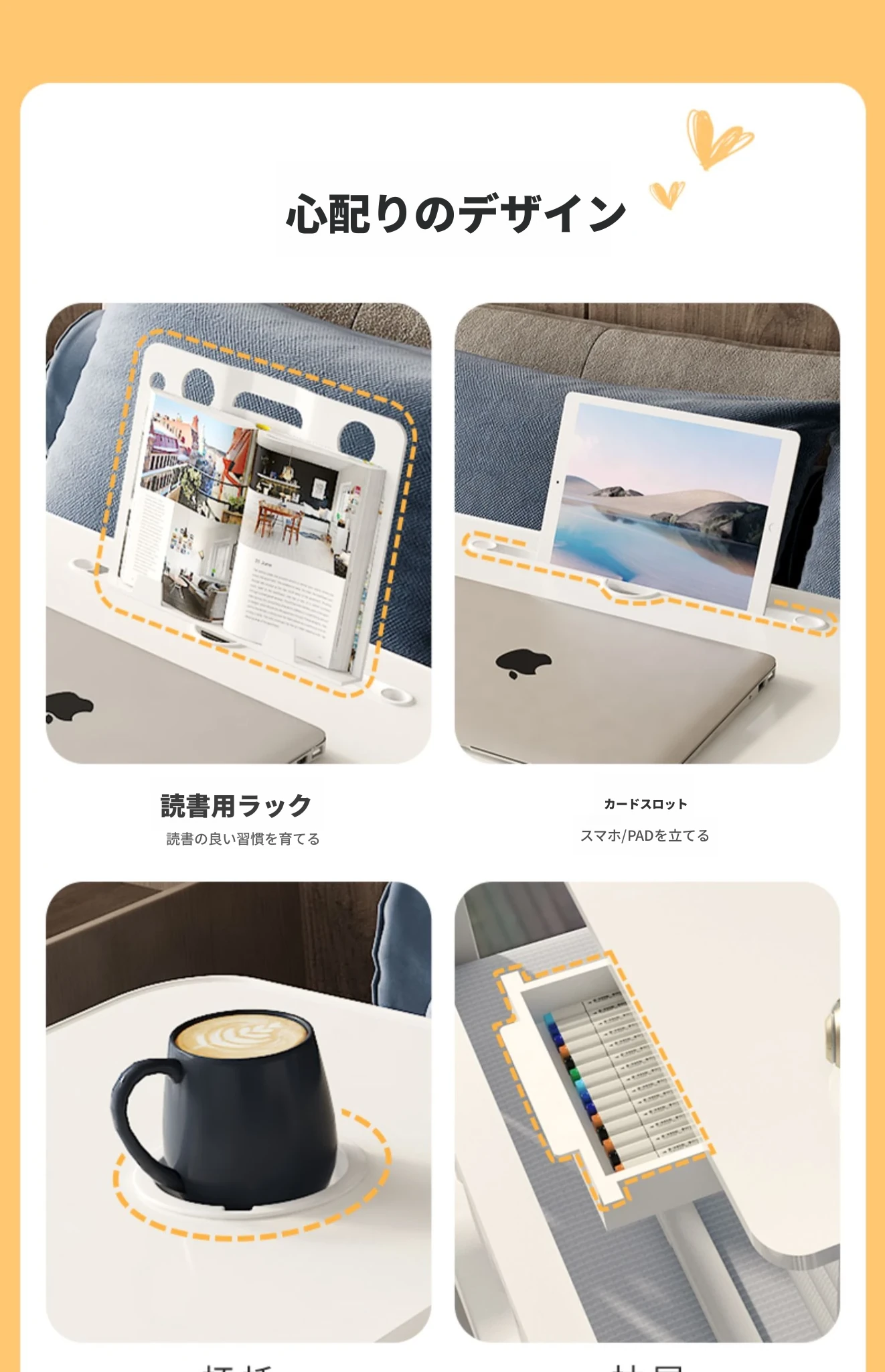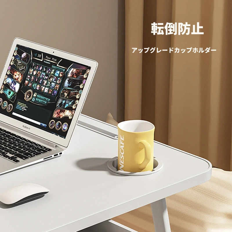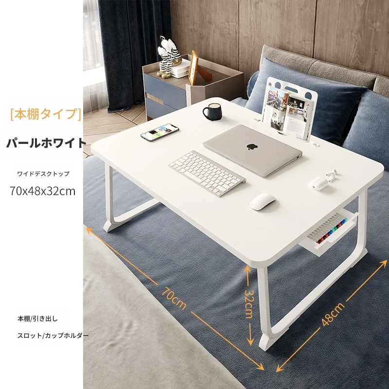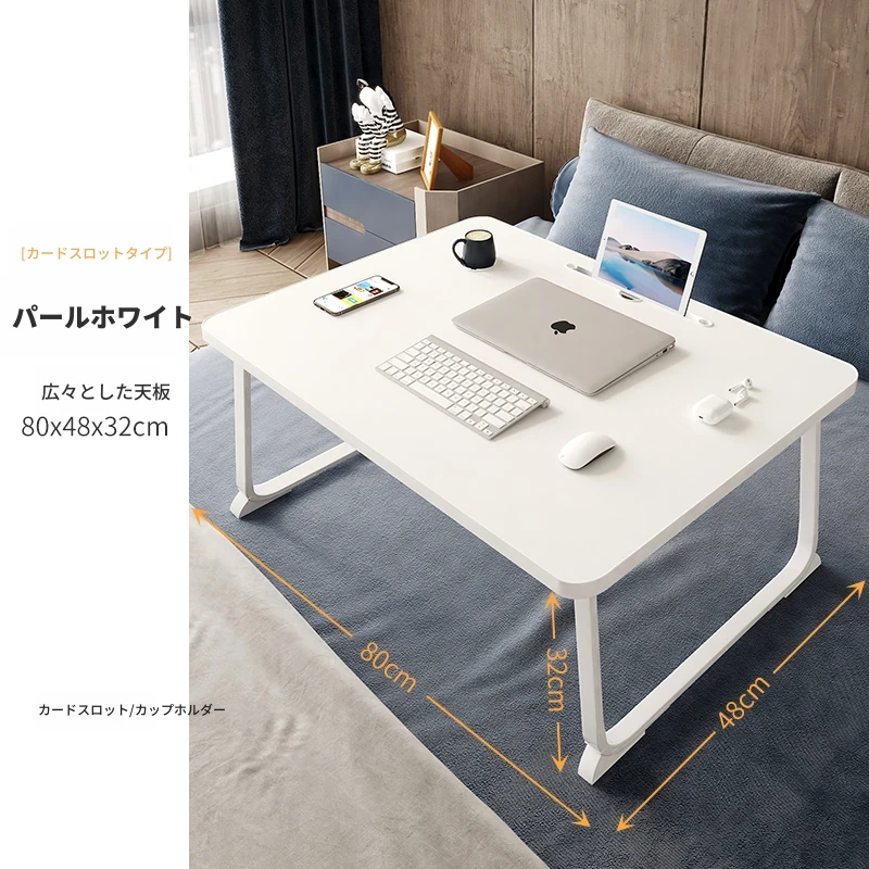 パールホワイト【ビッグデスク+カードスロット+カップホルダー】70*48*32キーボード置き可能