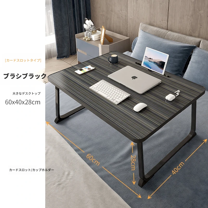 スタイリッシュブラック【超ビッグデスク+カードスロット+カップホルダー】80*48*32キーボード置き可能