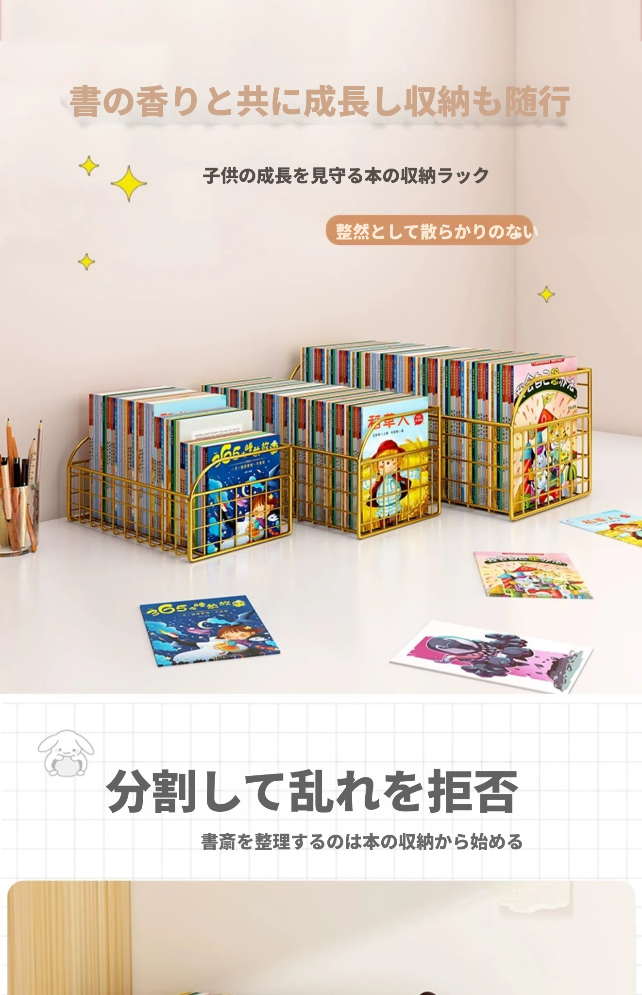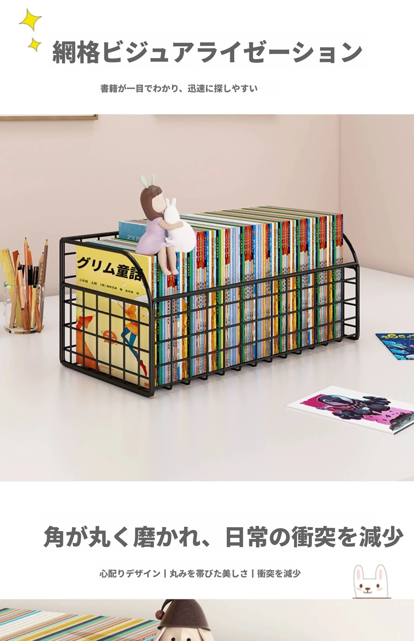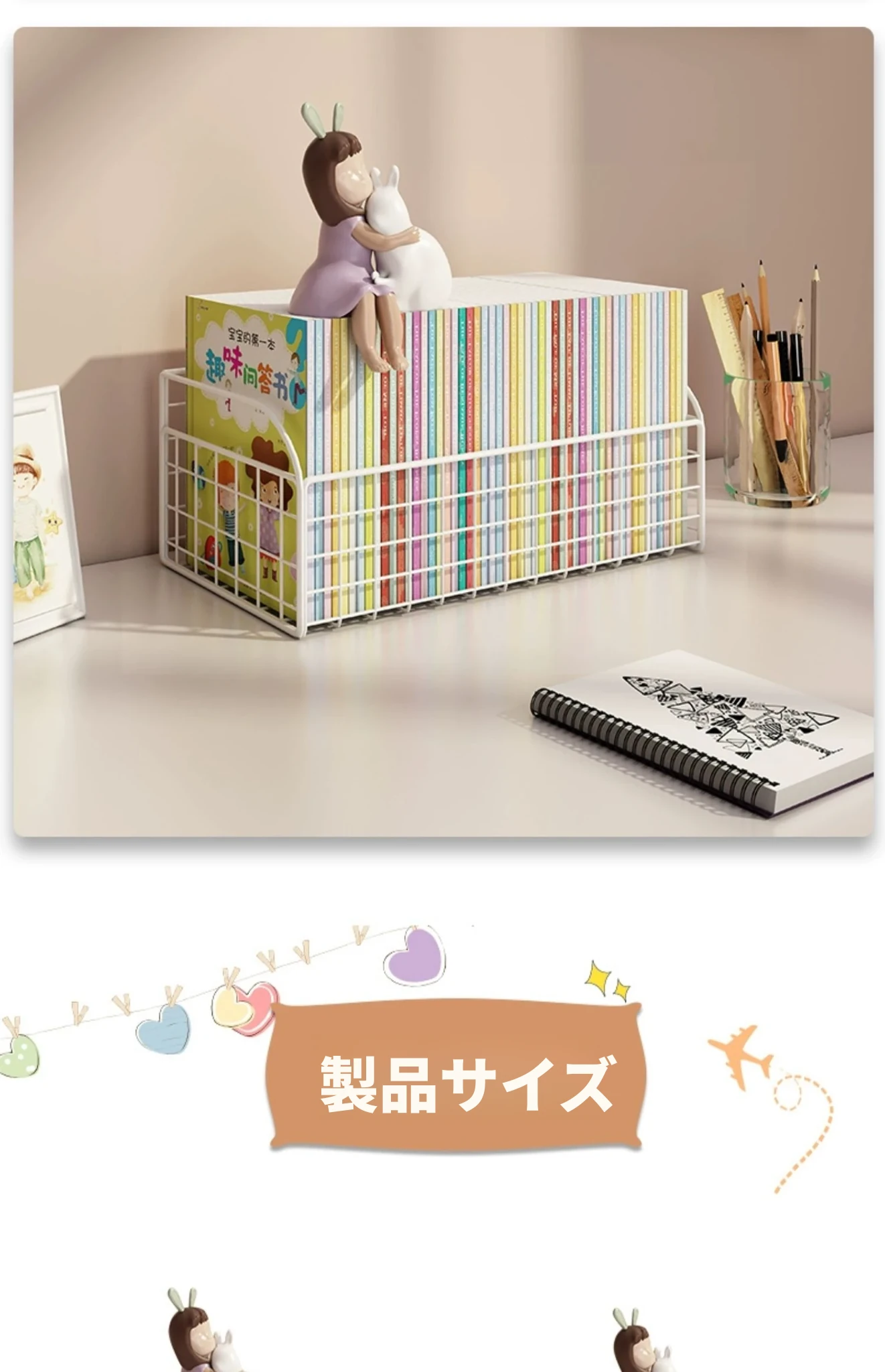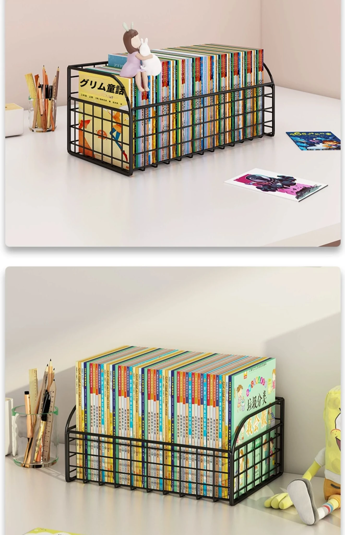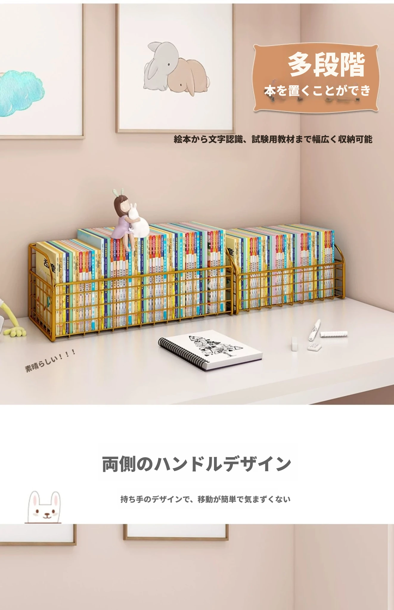 子供の絵本整理に最適!デスク上の本収納ラック - 学生向けの便利な本立てで、部屋をスッキリ整理!使いやすく、おしゃれなデザインでお子様の読書環境を整えましょう。