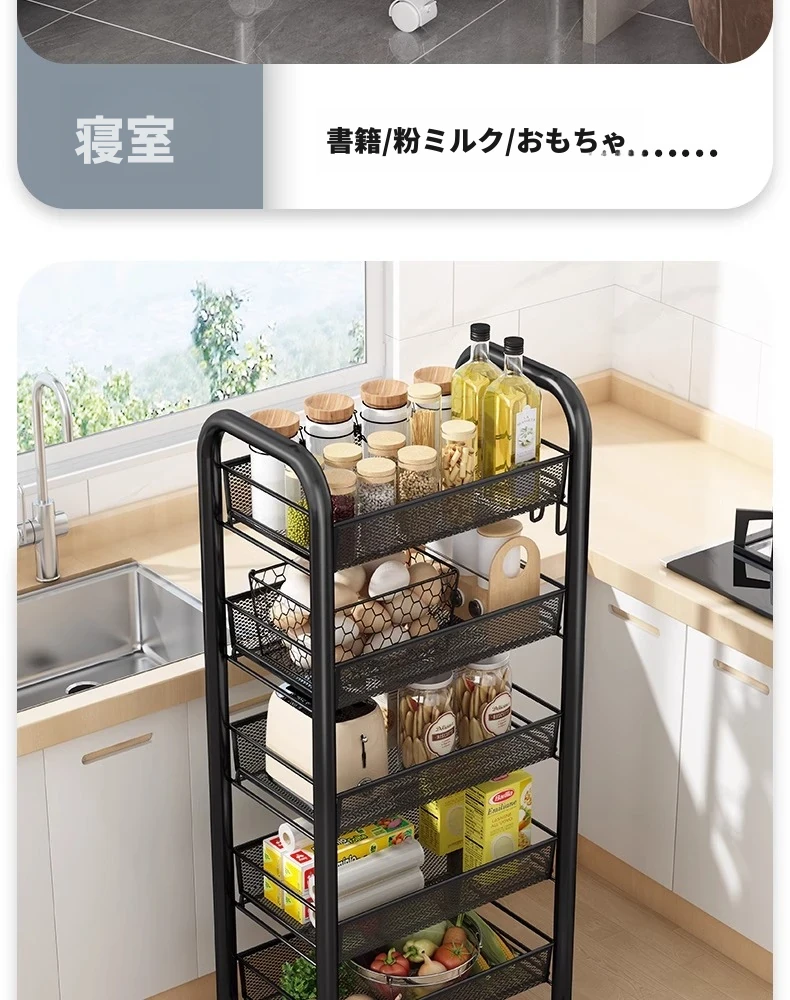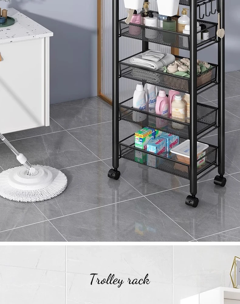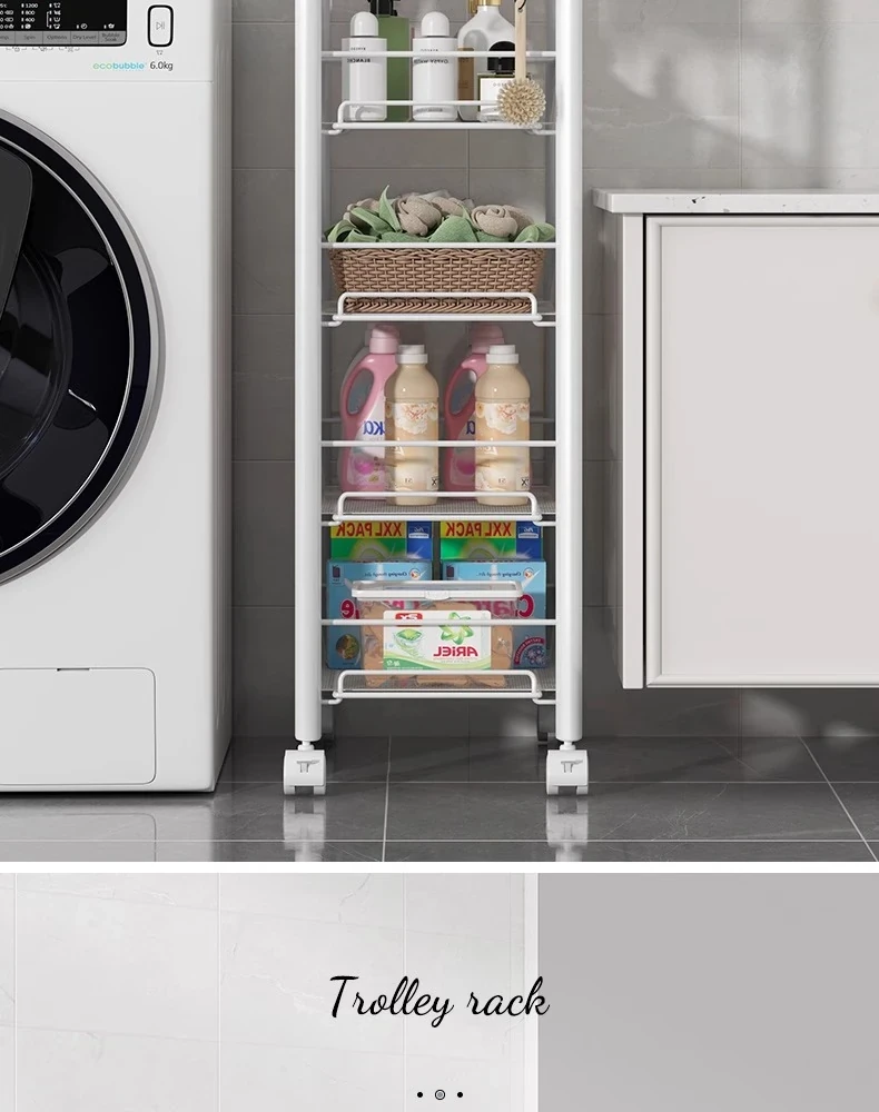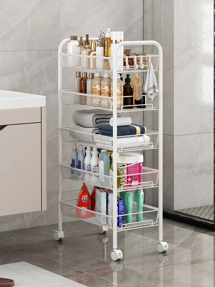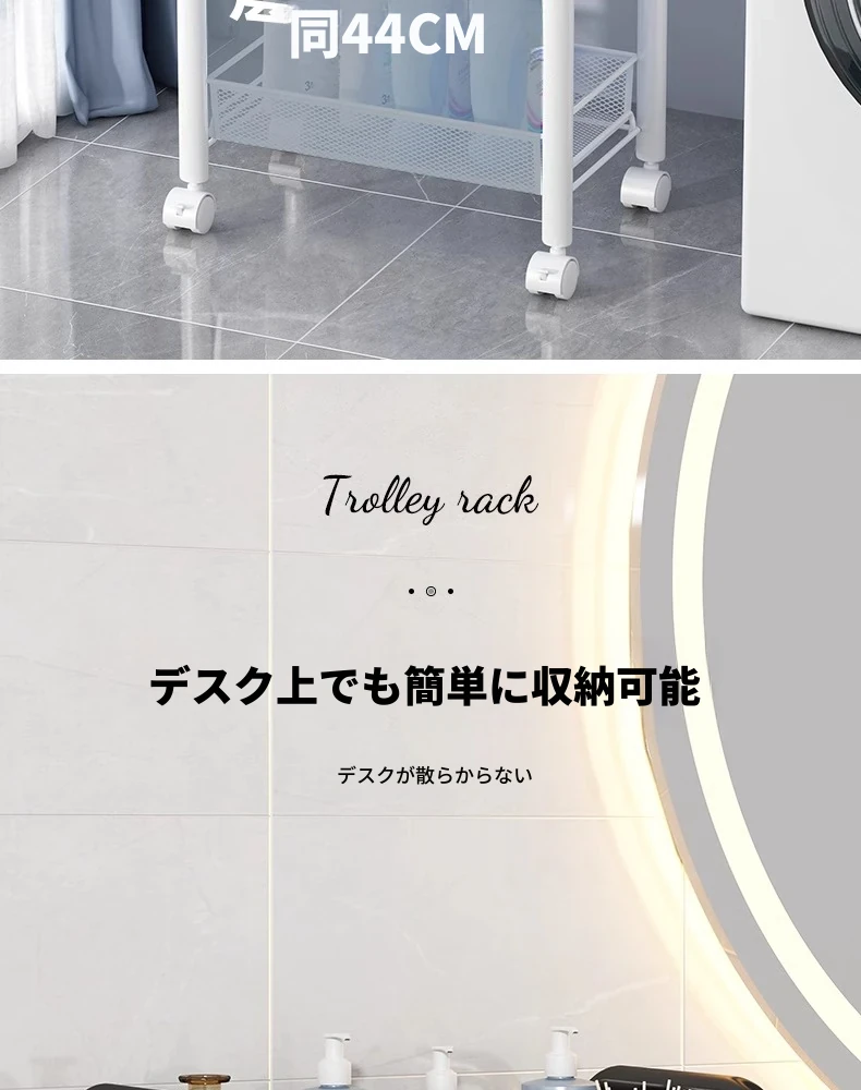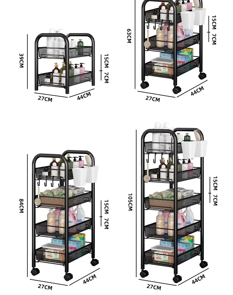 バスルーム用多層収納ラック - 移動可能な小型カートで、シャンプーやボディーソープもすっきり収納!機能的でスタイリッシュなトイレ収納棚。お風呂場をスッキリ整理して、快適なバスタイムを楽しもう!