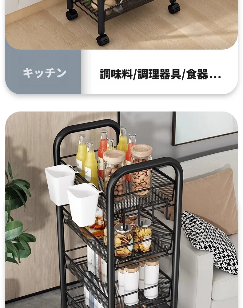 4段ブラック - 安定特厚全鋼【キャスター+フック+ハンガーボックス】