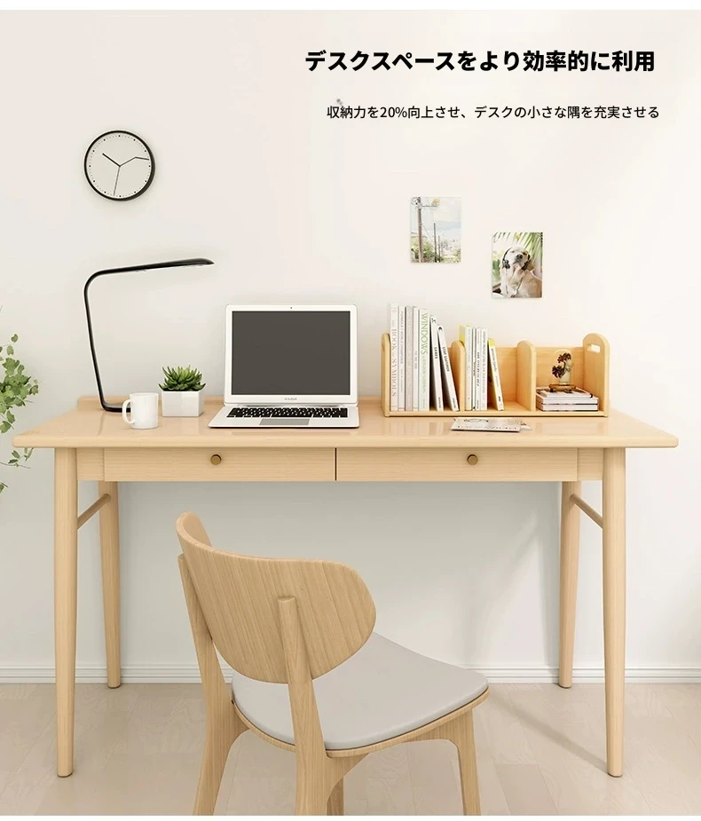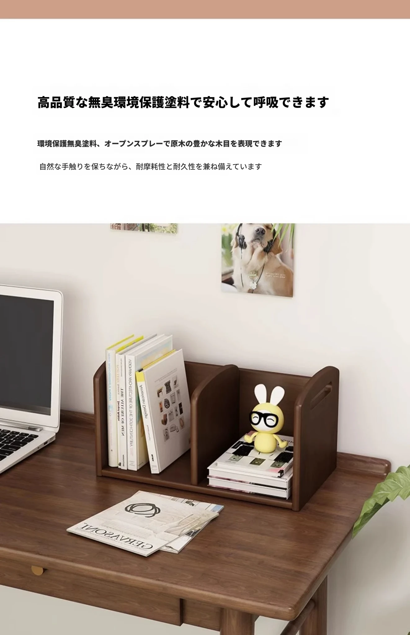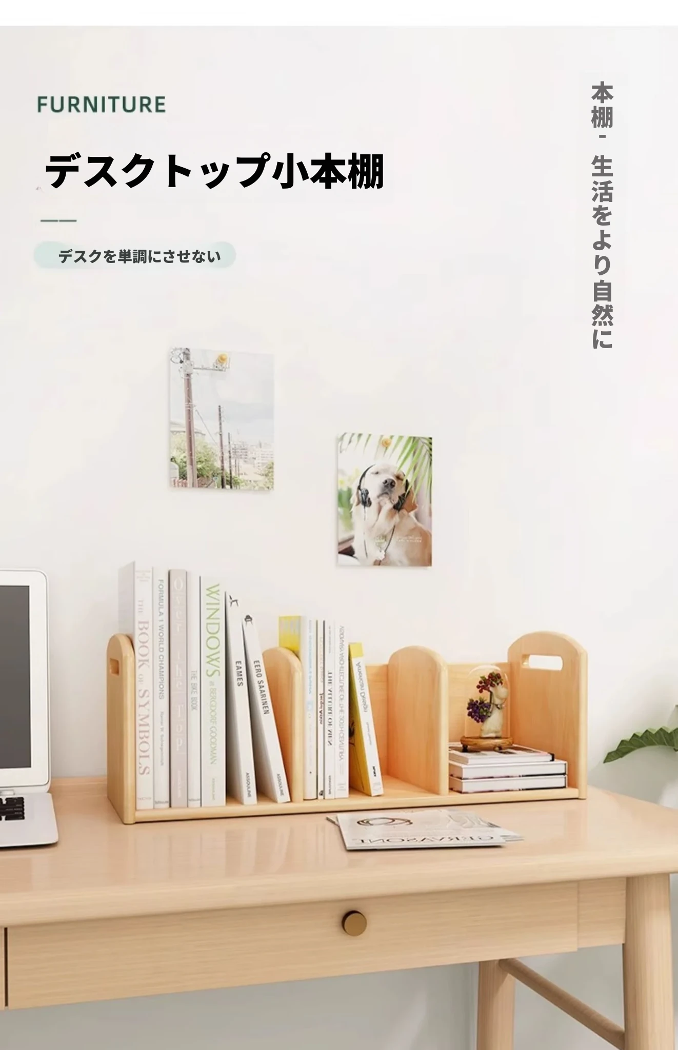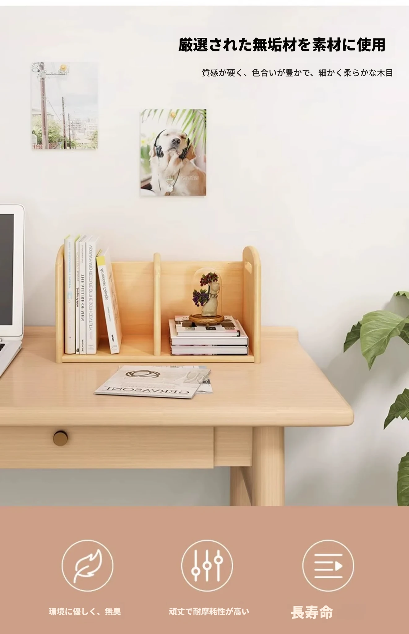 子供向け全木製デスク用シンプル書棚 - おしゃれな収納でお部屋をスッキリ!デスク上のスペースを有効活用し、整理整頓をサポートする書籍スタンド。オフィスや学習環境にも最適です。