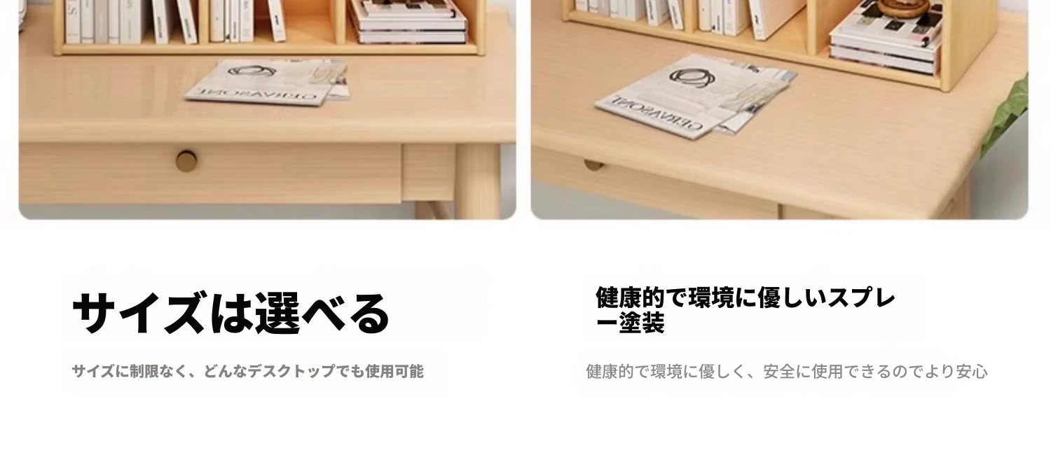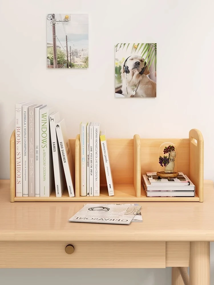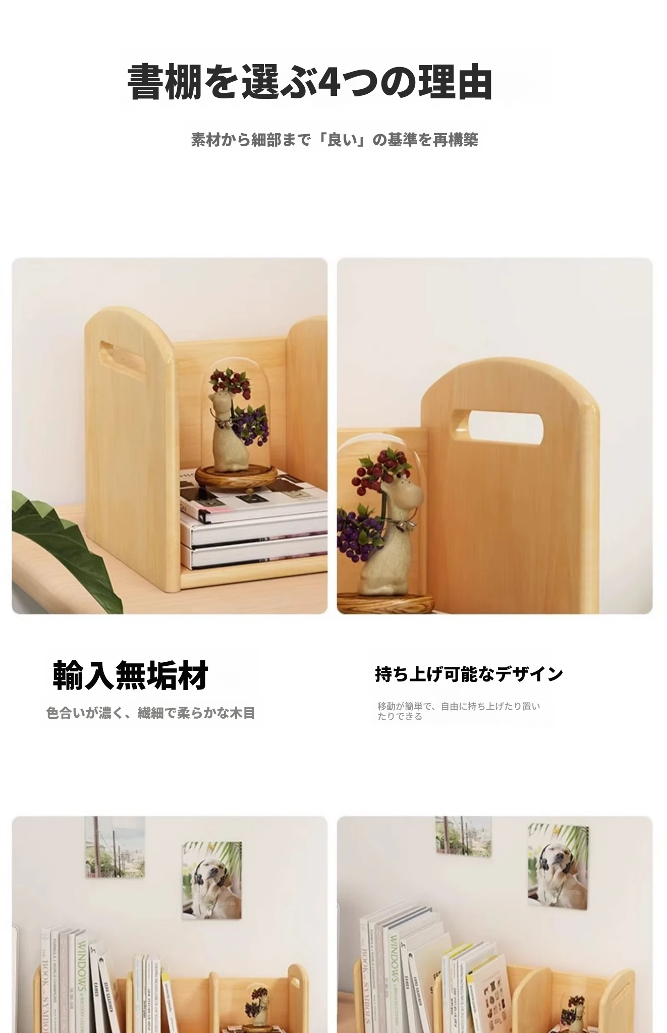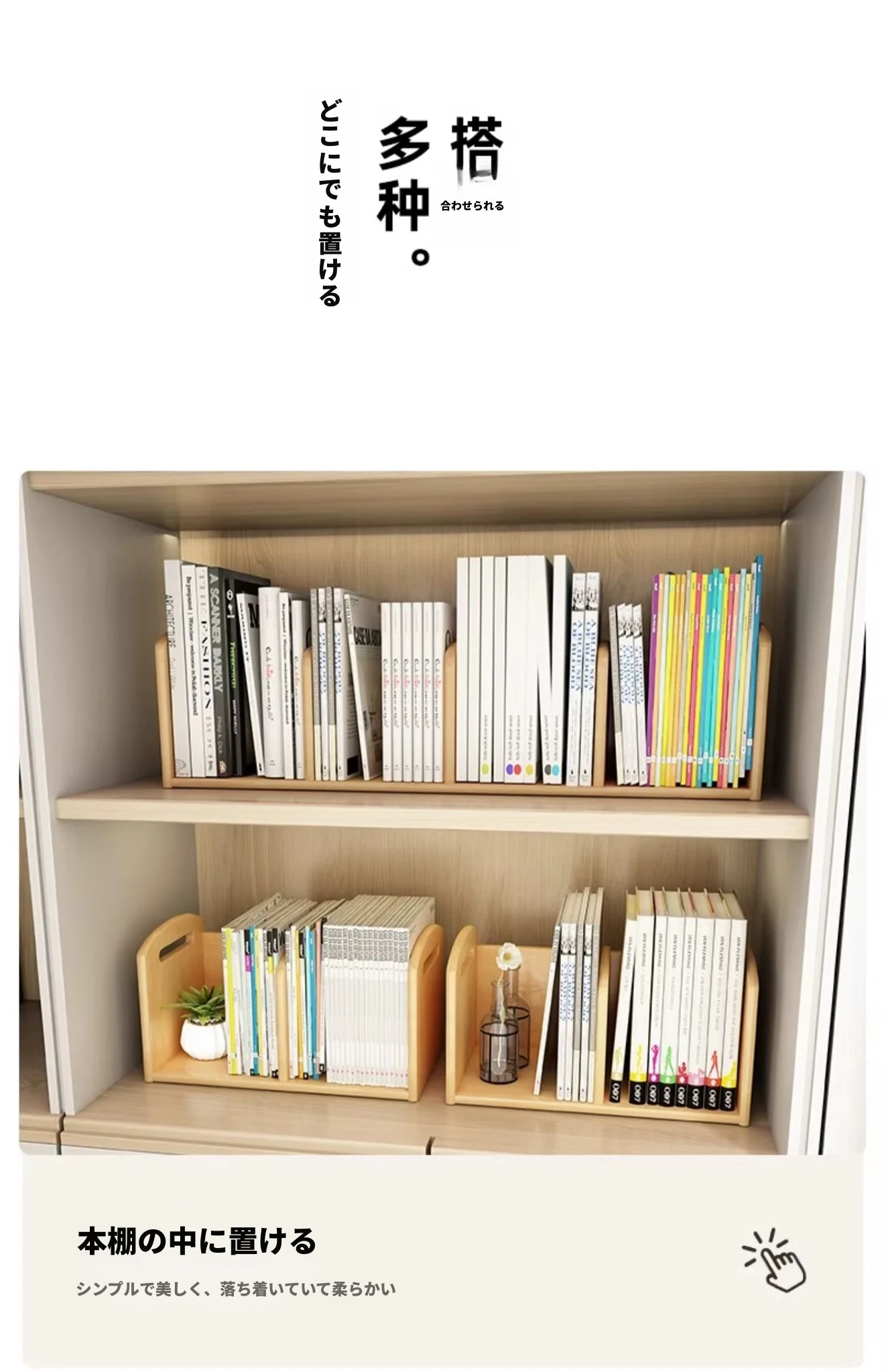 子供向け全木製デスク用シンプル書棚 - おしゃれな収納でお部屋をスッキリ!デスク上のスペースを有効活用し、整理整頓をサポートする書籍スタンド。オフィスや学習環境にも最適です。