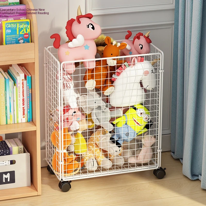 Plush Toy Storage Basket - Cute Stuffed Animal Organizer with Wheels, Perfect for Keeping Toys Tidy and Out of the Way, Ideal for Small Spaces