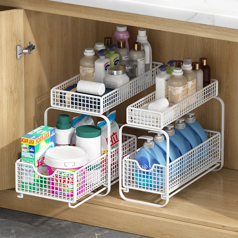 Under-Sink Storage Organizer for Bathroom Vanity - Pull-Out Basket for Bathroom Sink Cabinet - Multi-Layer Shelf for Efficient Drain Cabinet Organization