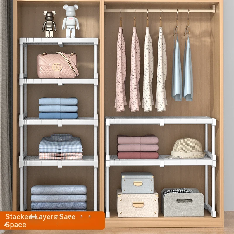 Expandable Layered Shelf Organizer for Wardrobes, Cabinets, and Shoe Racks - The Ultimate Storage Solution for Clutter-Free Living Spaces!